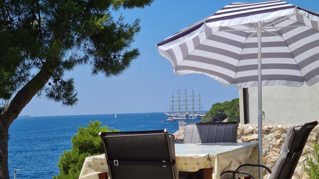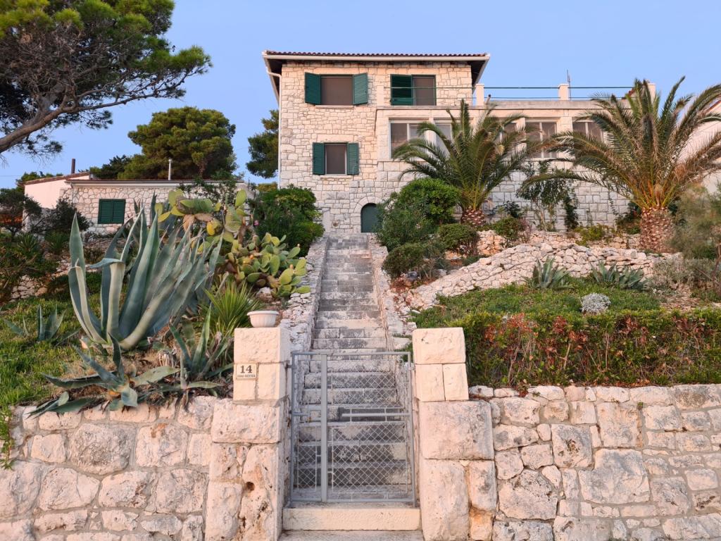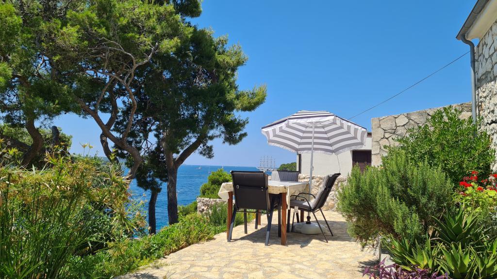 The apartment on offer is a guest house for holidays which is first row to the sea. It consists of two double bedrooms, a kitchenette, a bathroom and a spacious terrace with a view of the greenery and the sea. Swimming is possible on the rocks below the house. The first beach (with a beautiful view of the sunset) is a walk along the coast of less than 5 minutes. The city center is about 15 to 20 minutes of easy walk along the coast and halfway there you will find several cafes, restaurants and shops. We are in a quieter part of the town of Hvar where you can hear the waves and yet close to everything. The house is equipped with air conditioning and wifi connection. The reservation calendar and price list on this page are regularly updated, so I invite you to check the desired date. We only rent this one apartment with a terrace that is in the pictures and unfortunately we cannot offer you another one in the dates that are occupied in the calendar. We look forward to your arrival :)