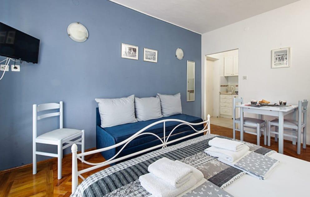 The location of the apartment is great, literally across the street from the beach. The apartment is comfortable to stay in, just right for two people. We were greeted by a clean apartment, with everything we needed. Studenac is nearby (5 min walk), and there are plenty of restaurants and taverns on the promenade. The place is quiet and ideal for a family vacation. The hostess Dijana is extremely polite, helpful and caring. We are very satisfied with our stay.