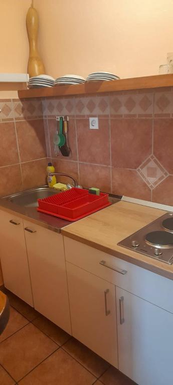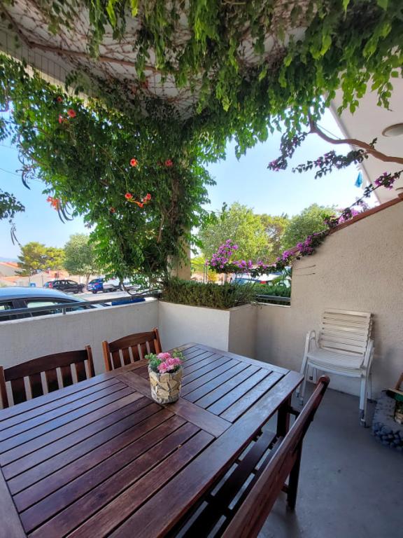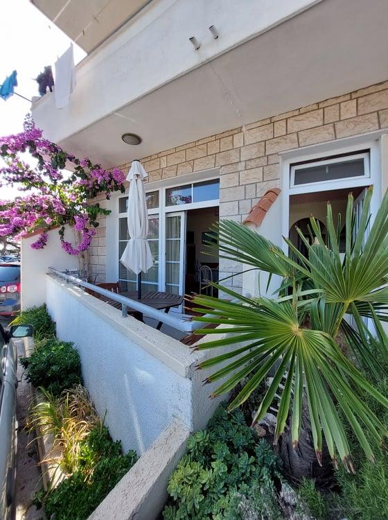 Peaceful and quiet family place, the beach is only a few minutes' walk from the apartment. The shop is 100 m from the apartment, and the center with restaurants and cafes is about 200 m away. Each apartment has a spacious terrace and air conditioning. Parking is in front of the house.
