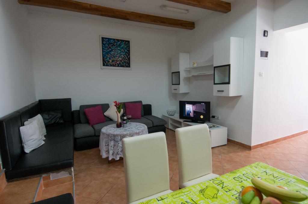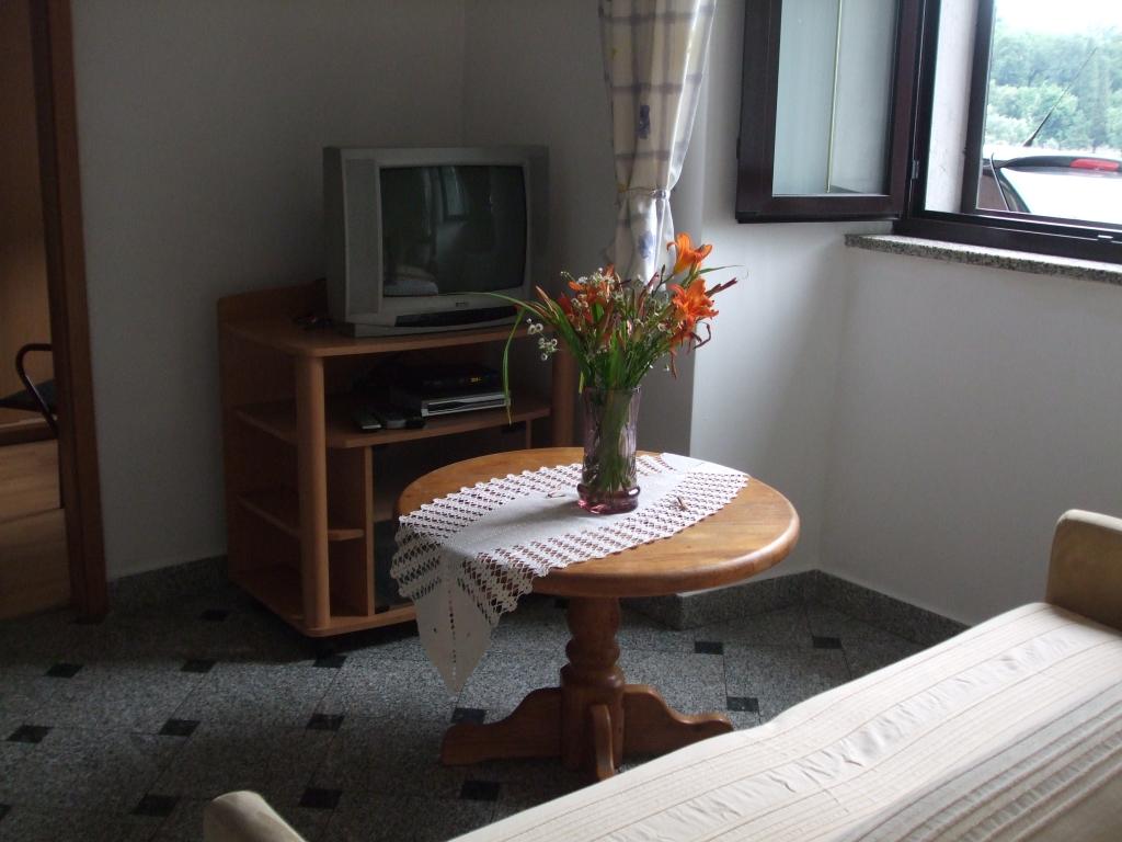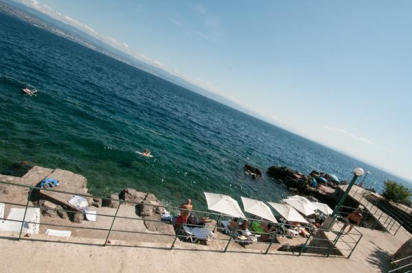 Description of the apartment “Vesna” The apartment “Vesna” is located in the downtown of the place Ika on the main “Primorska” Street. It is perfect for the accommodation of families, friends and couples. Furthermore, it is only 50 m away from the beach and few meters away the very famous walking route “Lungo Mare”, which connects Opatija and Lovran. It is a perfect opportunity for night romantic walks or on the other hand, for a daily family walk to the beach. The apartment constitutes of a bed-, living room, kitchen and a restroom with a beautiful shower cabin. Moreover, the bedroom has a double bed, closet and night shelf. In addition, the living room has a big modern couch, where additional persons can have a very confortable sleep. Moreover, it has SAT TV and a new air conditioning system. The kitchen has a dining table, cooker and spacious fridge. Last but not least, the apartment has a 350m2 garden with a barbecue, big dining table and ping pong table for recreation and fun. From the garden you can have an amazing view to the Adriatic coast, which is only few meters far away from the garden or you can enjoy the amazing and romantic view of the Adriatic sea and the beautiful Croatian islands during the sunset.