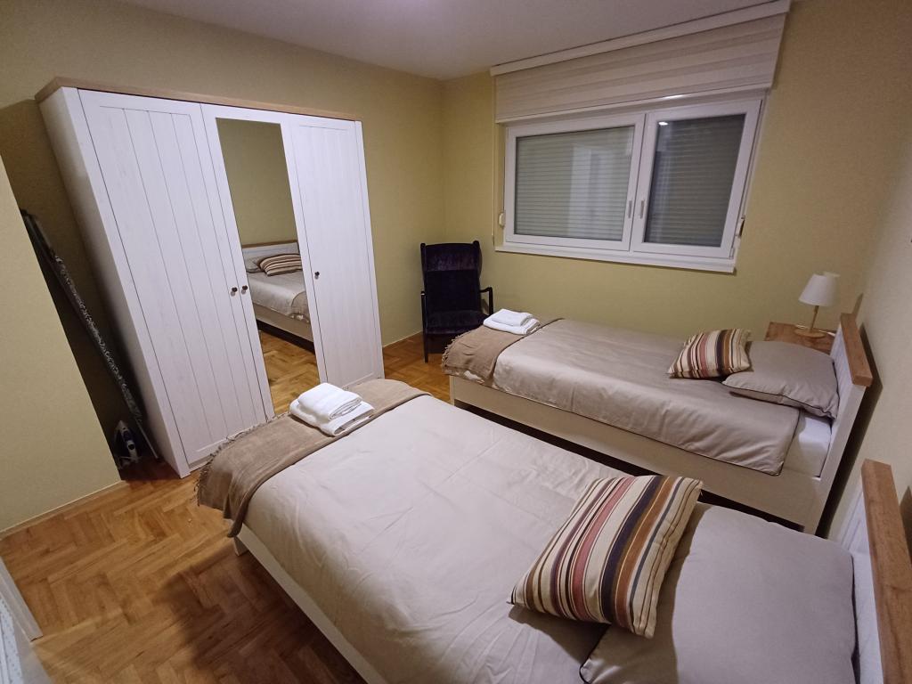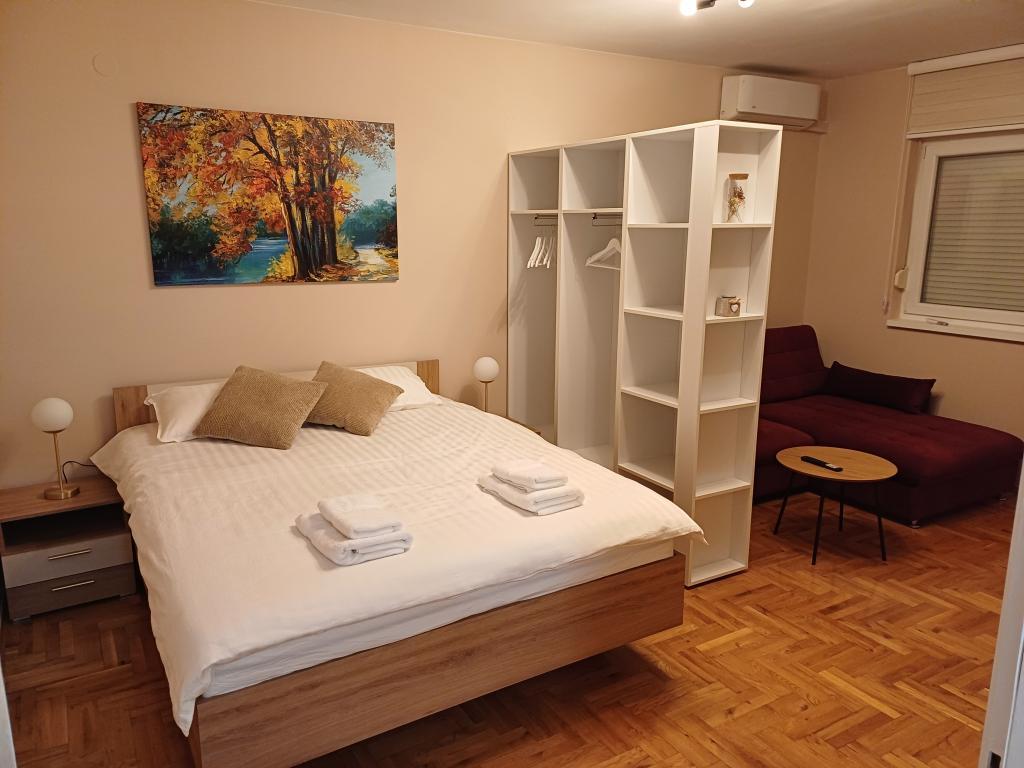 Apartment in a great location - in a quiet street, high ground floor, balcony overlooking the garden. In front of the building there is free parking, in the shade. Nearby, a five-minute walk, there are shops, a kiosk, an ATM, a cafe, a restaurant. The apartment is equipped with everything you need for your stay – TV, Internet (WiFi) works without any problems, hot water in the bathroom and kitchen. The kitchen is new, super equipped (fridge, kettle, stove, oven). There is no microwave in the kitchen, but we never use it, so we didn't miss it. The bathroom doesn't have a washing machine (we didn't miss it either). There is air conditioning in the living room. A small balcony overlooking the garden is quite enough for those who want to drink coffee and/or light a cigarette outside. In the utility room there was everything we could have needed (vacuum cleaner, spare kitchen and bathroom accessories). The hosts were extremely accommodating, always available. Communication was mainly via messages and they really tried to answer all our questions and requests. There is a box at the entrance with a key code, so it was no problem for us to organize the entry and exit of all members at different times. The neighborhood is quiet. A few minutes walk away are a shop (Konzum), a kiosk (Tisak), a pharmacy, a restaurant (Iločki podrum), and a (decent) café. The old town center with a beautiful park for walking is also a 10-minute walk from the apartment. In the center, you can visit the old Ilok cellar, a museum located in the castle, the walls, a church, and a monastery. The view of the other bank of the Danube from the walls or from the monastery courtyard, the promenade along the Danube or along the walls - everything makes you want to repeat the tour several times. The park is well maintained and occasionally has additional facilities that are worth attending. The stunning Principovac is a 3-minute drive away, and the prices there are not too high – roughly at the same level as prices in restaurants and cafes in Zagreb or lower. We recommend it to families or couples. We were all delighted with the equipment of the apartment, the location and the ease of communication with the host. When our trip takes us to Ilok again, we will be happy to return to the same accommodation.