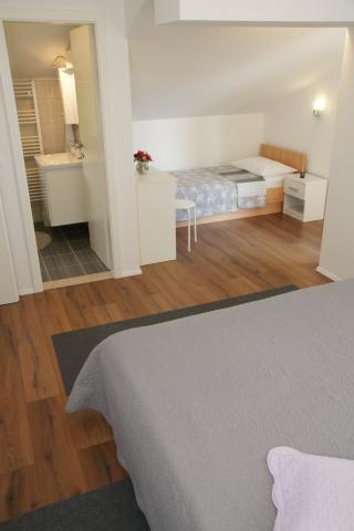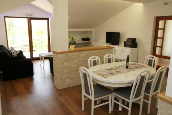 In Imotski, near the most beautiful karstic lakes in Croatia, Blue and Red Lake, we offer a modern, newly renovated apartment for 4-6 people in the attic of a family house overlooking the mountain Biokovo in a quiet environment. Accommodation in the apartment is perfect for getting away from the city noise and at the same time close to all the necessary amenities. Distance from the city center is 3 km, Adriatic Sea (Baška voda, Makarska) only 30 km, Sanctuary of Medjugorje (BiH) 50 km, Ski resort Kupres 80 km, Split 90 km.