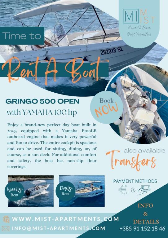 Our offer also includes a rent a boat and boat transfer service with the licensed skipper.