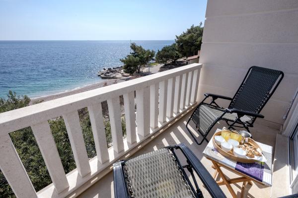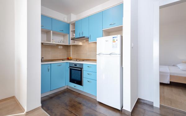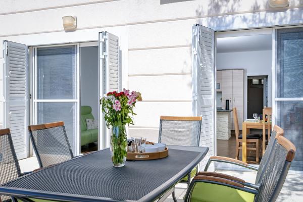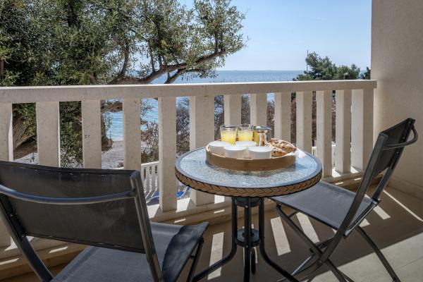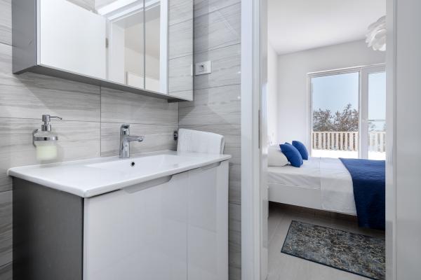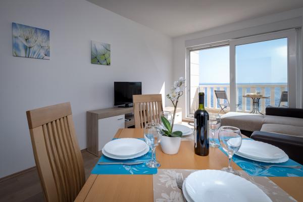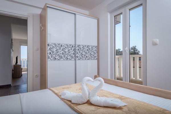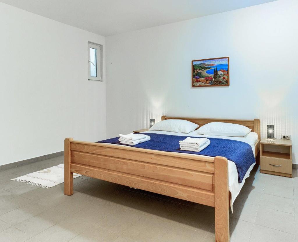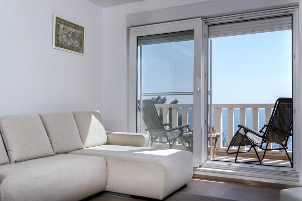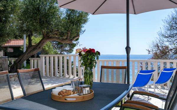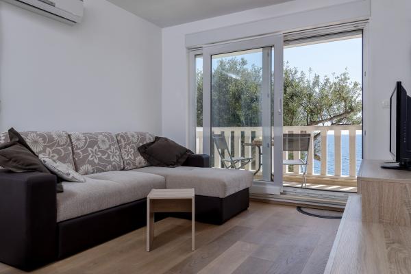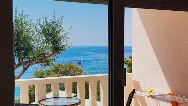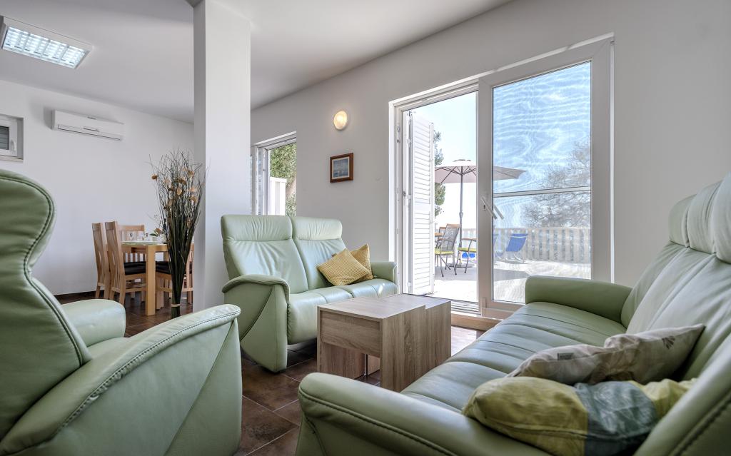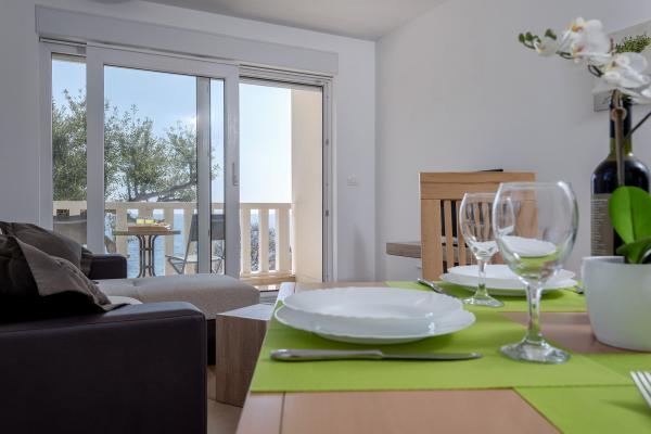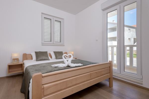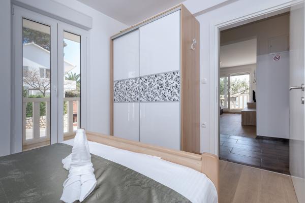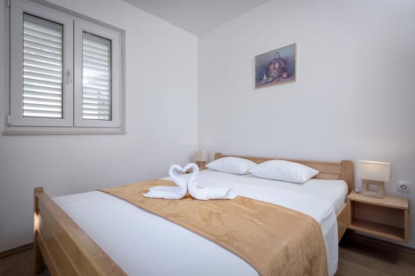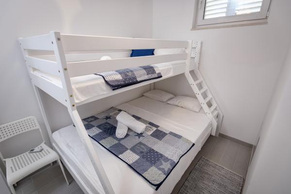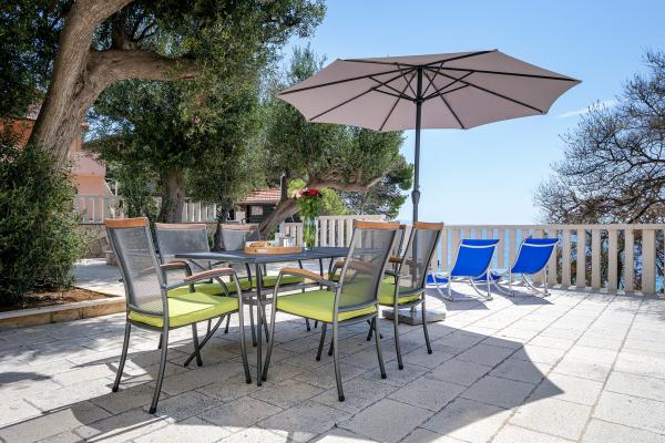 Newly built and modernly equipped apartments are located right next to the beach in the quiet town of Ivan Dolac. Apartments Unit 1 and Unit 6 are for 4 people, they consist of a bedroom with a double bed 160 x 200, a bathroom with a shower, a kitchen and a dining room, and a living room with SAT-TV and a sofa bed, and a terrace with a beautiful overlooking the beach, sea and islands. Apartments P1 and P2 are for 8 people, they consist of 3 bedrooms and a sofa bed in the living room, 2 bathrooms, a fully equipped kitchen with a dishwasher, a dining room and a dining table on the large terrace in front with a view of the sea. Apartment P2 has a larger square footage than P1, as it has one entire bedroom and bathroom on the floor below. A restaurant and cafes are only 20 meters away, and a shop 100 meters from the apartment. Although the house is located in the very center of this small tourist town, it offers complete peace and privacy because the guests are mostly families with small children who enjoy the beautiful beaches and crystal clear sea.