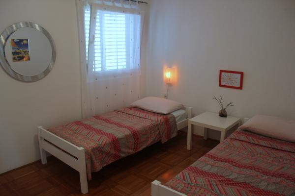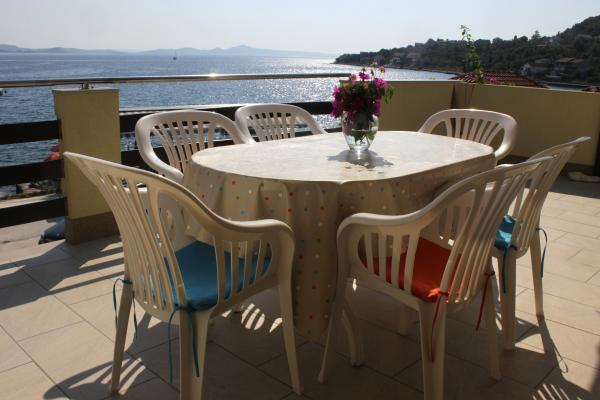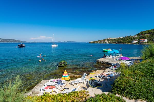 Relax in the peace and quiet of Apartment Knežak, located right by the sea on beautiful island of Iž. Island of Iž on the threshold of the Kornati national park. From Zadar, a 3000-year-long city, it is only hours away by ferry or 40 minutes by boat. Knežak Apartments are nicely and comfortably equipped; air conditioning, radio, TV, bed linen. In the house you have the possibility to use barbecue, internet, ... The larger apartment (up to 8 people) has 3 bedrooms, a living room, a kitchen, a bathroom and a large terrace (30m2) with a beautiful view of the sea and the neighboring island. Smaller apartments can accommodate up to 4 people, have a bedroom, a kitchen with a living room, a bathroom, a terrace and a balcony. Both have a sea view. The apartment house is located right by the sea and the beach, where guests have deck chairs and umbrellas available. Parking is provided in front of the house. Island Of will certainly meet your needs, fill your senses, and you will surely come back to it!