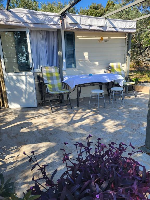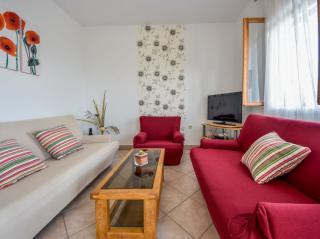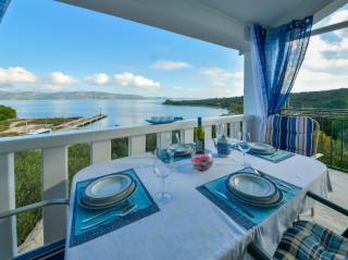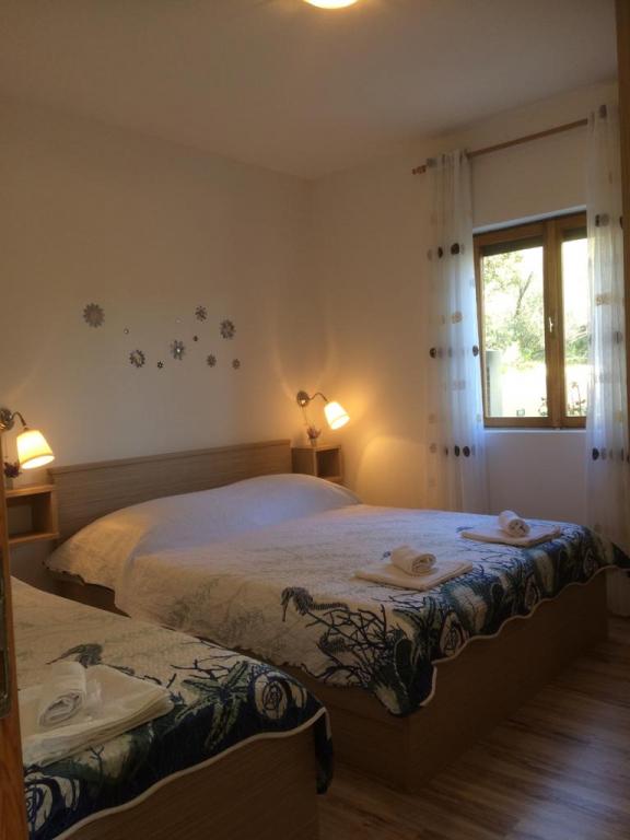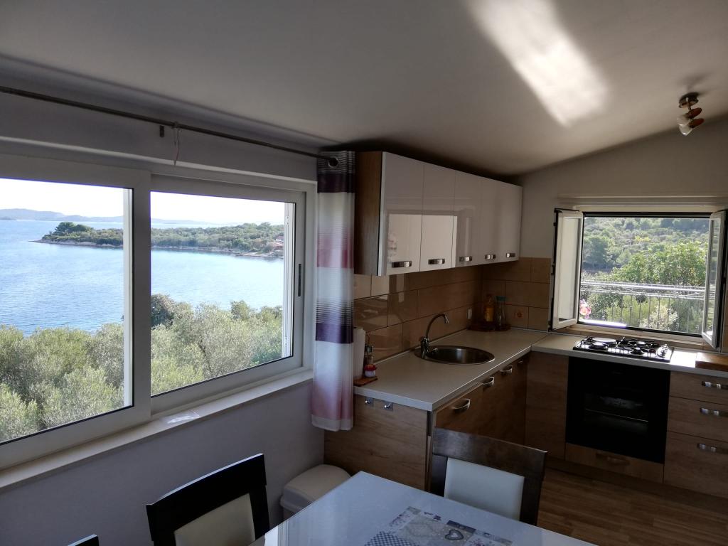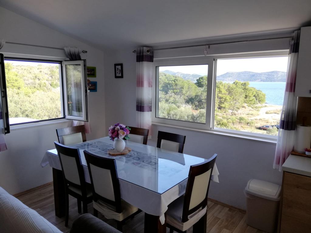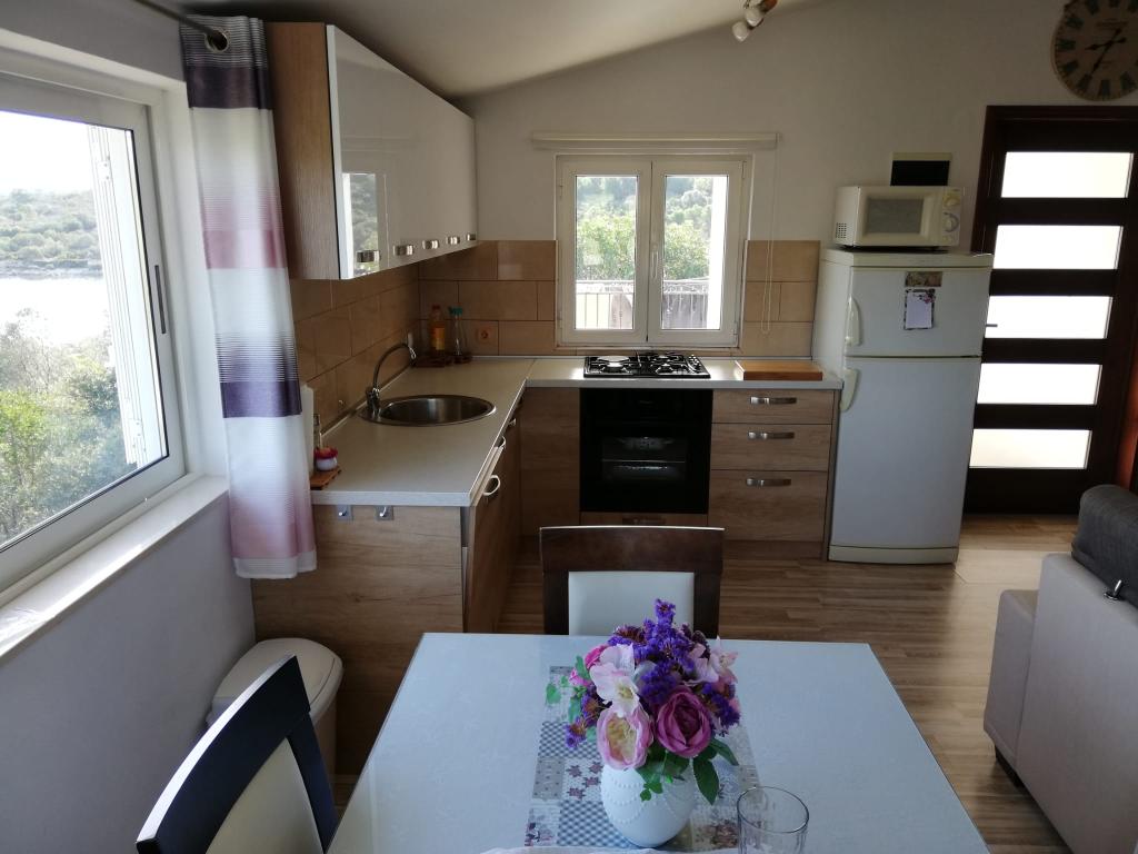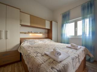 Apartments Helen is located on Mali Iž, very close to the sea, in the Bršanj bay. The house has a barbecue and parking. Two terraces, with a sea view, consists of 2 floors. Lower floor: 1 room with 1 bed (90 cm, length 200 cm), 1 large bed (160 cm, length 200 cm). kitchen (hob, oven, freezer). living room, bathroom. Upper floor: (external stairs) living/dining room 35m2 with satellite TV. receiver and WI Fi. 1 room with a large bed (160 cm, length 200 cm and an extra bed of 90cmx 200cm). Second room with 1 large bed (160cm, length 200 cm), kitchen (4 hobs, oven, freezer), bathroom. Pets are allowed.