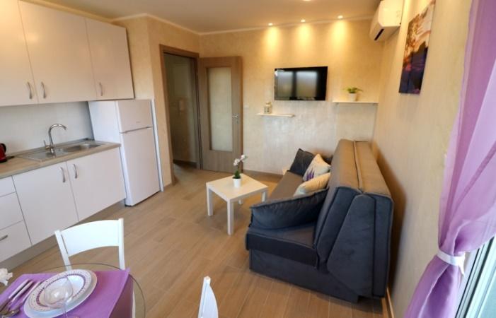 Apartment Lavender is located in a small tourist town Jadranovo (the place is 8 kilometers from Crikvenica (Crivenik Riviera-Kvarner) and 25 kilometers from Rijeka). The apartment has a 4 star category. Apartment "Lavander" is in a modern "new house" (first floor). The house is in a quiet part of Jadranovo surrounded by forest, and from the balcony of the apartment you can see the sea. The distance to the first beach is 300 meters. Parking space in front of the house is provided for the guests of the apartment. The apartment has a total size of 40 m2 and has a hallway, bedroom, bathroom, living room with kitchen and balcony. The apartment can accommodate 2-4 people. It is equipped with air conditioning, TV / SAT and free WI-FI. If you want to feel comfortable and have an unforgettable vacation, the right choice is the apartment "Lavender.