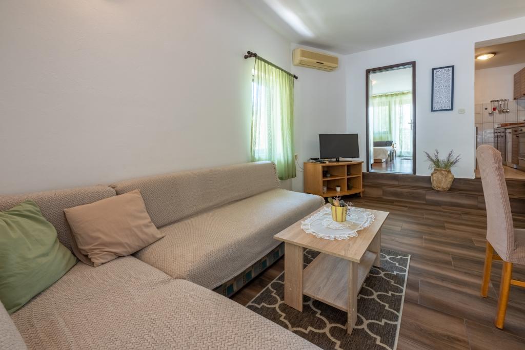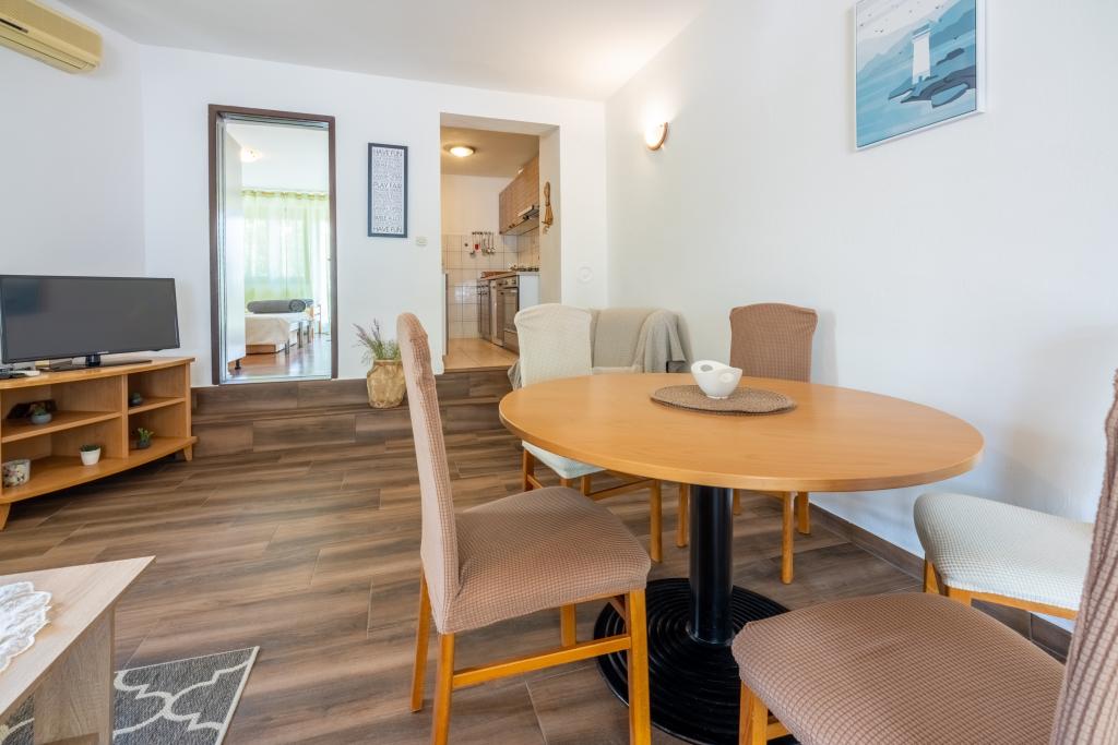 Air-conditioned apartment with 2 balconies, in a quiet secluded street, located in a small fishing village Jadranovo. The apartment has a garden, barbecue area, as well as WI FI and parking. The apartment has two balconies or terraces, 1 bedroom, living room, kitchen and toilet. You have a 10-minute walk to the nearest beach and a 15-minute walk to the other. The second beach is also accessible by car in 2 minutes, and you have free parking right on the beach.
