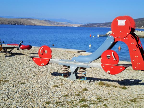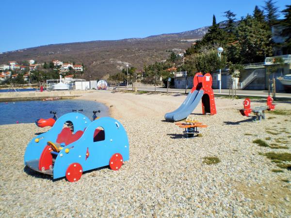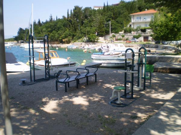 Jadranovo is a tourist town located nine kilometers from the city of Crikvenica. July 25 the feast of its patron, St. James the Apostle. Situated on the sunny north Adriatic coast, is known for its numerous beaches, coves and crystal clear sea, a sort of natural phenomenon and curative mud in the bay Lokvišće. The bay Lokvišće found a large number of broken amphorae, which indicates the existence of a small port and warehouse. Apartment 1 (43qm) is located on the ground floor. It consists of a fully equipped kitchen, living room and bathroom. The bathroom has a toilet, shower and wash basin. The kitchen and living room common area, where there is a sofa bed for 2 persons. bedroom 2 persons. The apartment is air conditioned and equipped with satellite TV, DVD, microwave and hair dryer. Guests have at their disposal garden furniture with a barbecue. 2 parking places. The second apartment is on the first floor (75m2). It has a balcony
