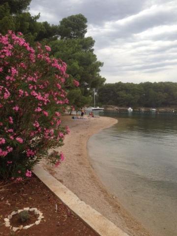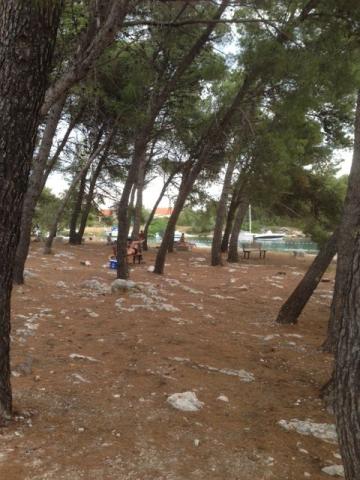 Apartment on the ground floor cottage on the peninsula of Jadrija, in a beautiful pine grove in Gustin valley, with a covered terrace, paved stone courtyard, with oleanders and figs, along the beach. In the two bedrooms there are twin beds and in the living room there is a sofa bed. You can sleep on the terrace and in the yard, small pets can come and kids of course. Jadrija is seven times a day connected to Sibenik's tourist boat for a price of only 12 kn. There is a restaurant, a few cafes, ice cream cake shop and excellent donuts, stand with vocem, bakeries. From the beach you can see the Roman fort of Sv. Nicholas in the sea that are connected by a settee to Sibenik. Nearby are the towns of Vodice, Skradin, Krka Falls, Kornati islands. Jadrija has its own lighthouse. The slopes can be reached upstream to Srima and Vodice and then swim. Climbing along the shore comes a surf club. The apartment is rented from 25. 8. 2017. for the price of 65 € per day, 30% on booking, the rest on the 1st day.