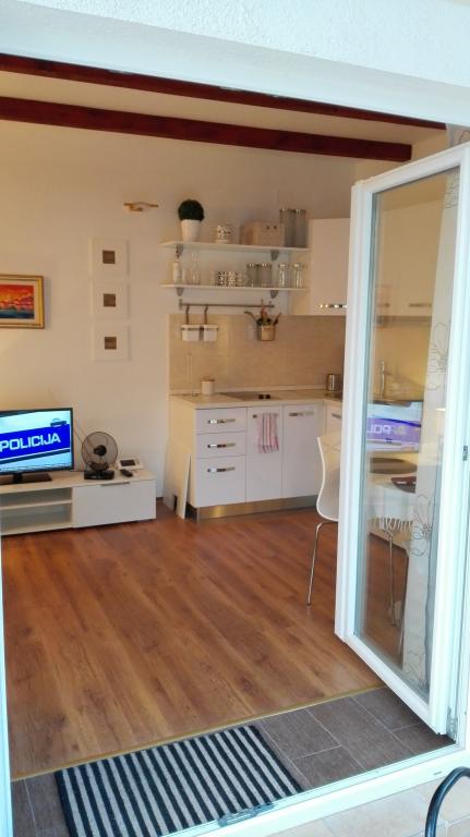 The apartment is newly decorated and is located on the first floor apartment in the seafront. Located on the city of Sibenik Jadrija which is 10 kilometers away from Sibenik and guidance of the 5 km. By Jadrije can be except by road reached by boat sailing through the canal St. Ante 20minutes. Nearby is a restaurant-pizzeria and shop. The terrace offers panoramic views of the garden in which are located a stone barbecue and shower. Minimum 7 nights in the period from 01 07 to 01 09th Secured parking in the yard in front.