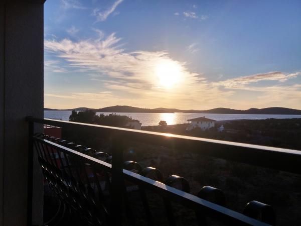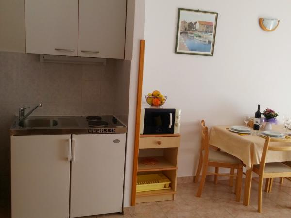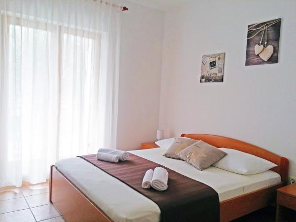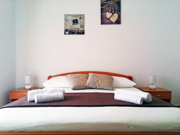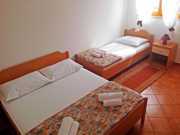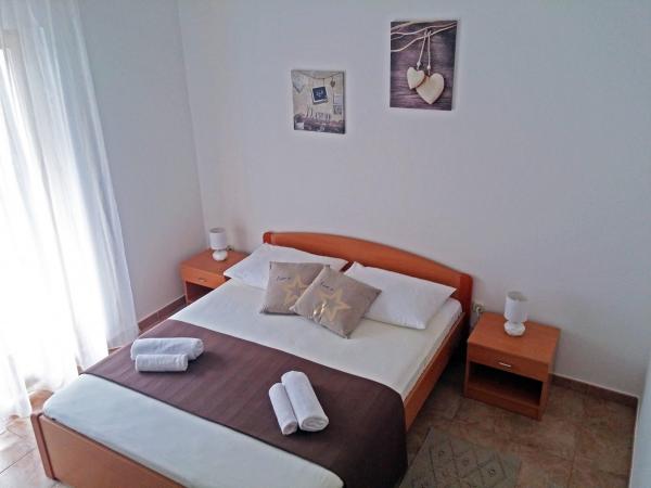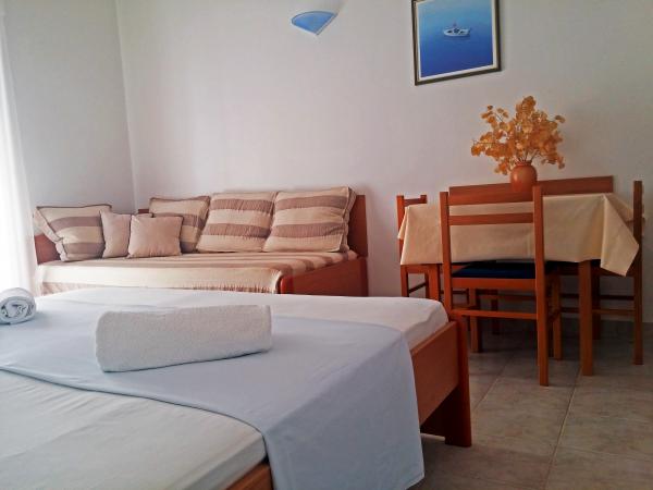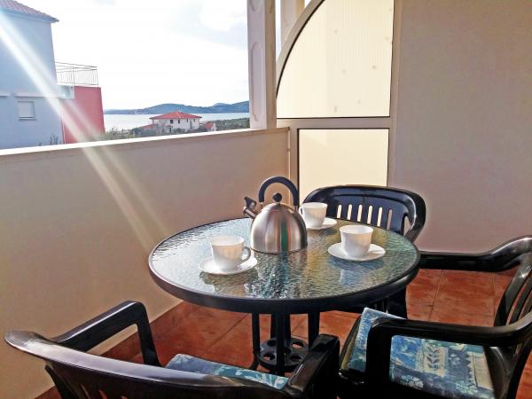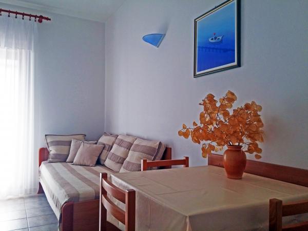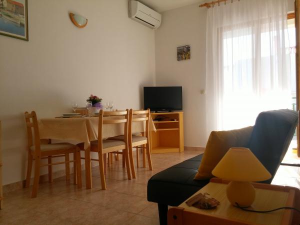 Before sending a query, please check prices and calendar of reservations that are under each apartment. The apartments are located in quiet area Jadrije located only 150m from the beach. All are equipped with TV / SAT, air conditioning and free WiFi connection to the Internet. Right next to the building there is a large fenced parking lot away from busy roads. In the courtyard there is a grill that is available for use. In the center of the remote 800m there are tennis courts, basketball and football, swings for children, restaurant, pizzeria, ice cream parlors and bars.