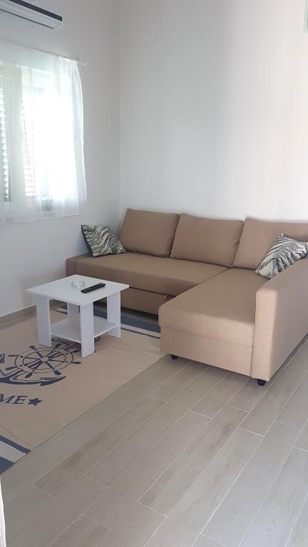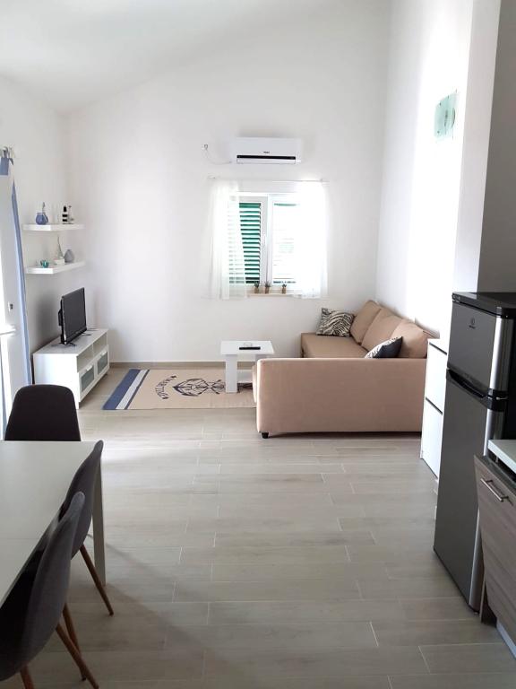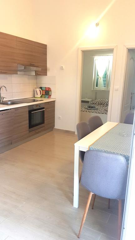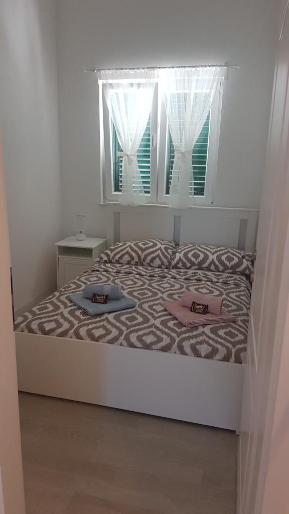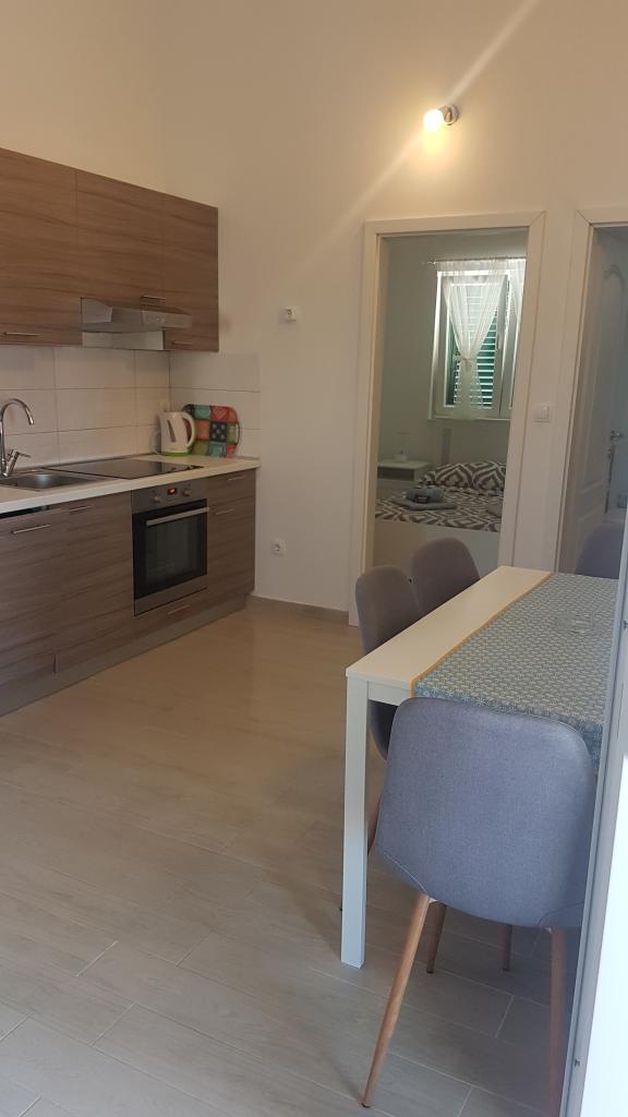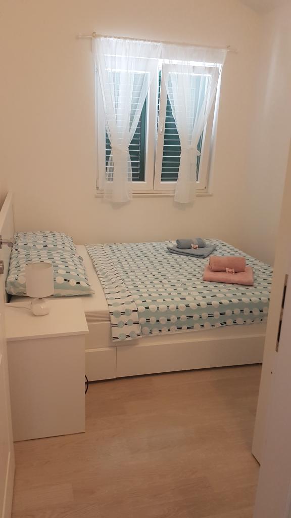 The apartments in Jadrija are located in the fourth row to the sea, i.e. a 2-minute easy walk to the nearest beach. The apartments are air-conditioned and fully equipped. One-room apartment (A2+2) consists of a bedroom, living room and kitchen, hallway, bathroom and a spacious balcony. The bedroom is comfortable and consists of a large double bed with a width of 1.6 m and a large wardrobe. Two-room apartment (A3+2) consists of 2 smaller bedrooms (bed 1.6m wide and bed 1.4m), living room and kitchen, bathroom and spacious balcony. In both living rooms there is a pull-out sofa, thus creating another high-quality and comfortable bed with a width of 1.6 m on which 2-3 people can sleep, depending on whether they are children or adults. The kitchens are fully equipped with dishes and standard appliances: oven, hob, fridge with freezer, kettle. Bed linen and towels are included in the price, and you can also use an iron for clothes and a hair dryer.