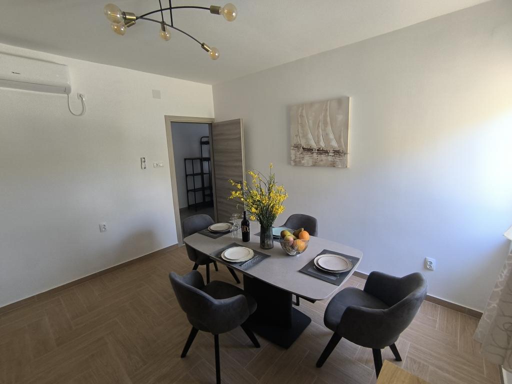 On one of the most beautiful and sunniest islands, Pag, in the northern Dalmatian archipelago, known for the oldest Lun olive groves in the northern Adriatic, is the village of Jakišnica, a small fishing village in a bay, surrounded by olive trees, holm oaks and clear sea. Jakišnica is an ideal place for rest and relaxation. The renovated house with two separate apartments is located first row to the sea. Apartment Yasenka on the ground floor has a bedroom, bathroom, kitchen with dining room, terrace with garden furniture, outdoor shower and deck chairs for complete relaxation. Apartment Iva on the first floor has two spacious bedrooms, bathroom, kitchen with dining room, living room, large terrace with grill and garden furniture and outdoor shower. Parking is provided, free wifi, air conditioning, restaurants, local shop, public sandy beach, rocky or small pebble beach located 10 m from the property are nearby.