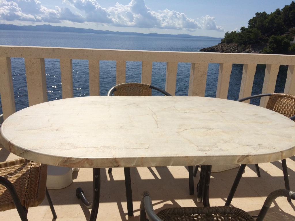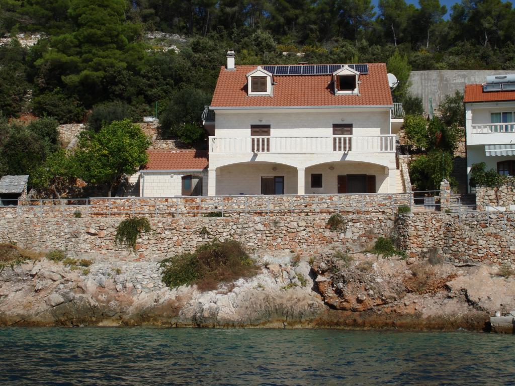 Modern apartments in Gdinj village, Torac bay. House on the seafront in a quiet bay just 50m from the pebble beach. Next to the house is a concrete boat dock that can also be used for swimming and sunbathing. The apartments are supplied with electricity and hot water from solar sources. Guests can also use a shared grill for wood and charcoal. A small grocery store with basic groceries and drinks and a smaller restaurant are located in the adjacent bay only about 300m away. Three bays further, about 2 km away, there is a fish restaurant. To the center of the village where there is a slightly larger shop and the restaurant is about 4km. The nearest pharmacy, pharmacy and supermarket are located in Jelsa, about 25km away.
