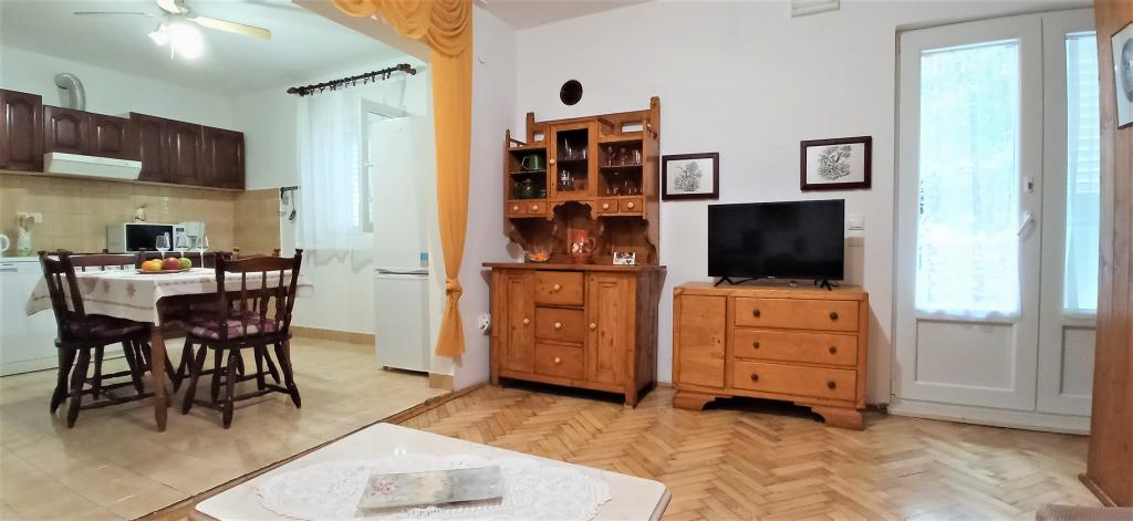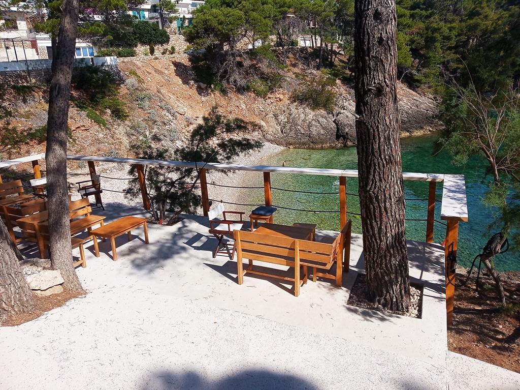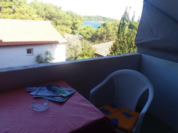 Perfect location with a lot of small beaches within walking distance. 2 rooms are really nice equipped - hotel standard. Each room has large SAT TV, bathroom, balcony and each room has it\'s own kitchenette!!!! Small gardens around house, pine trees, barbecue. Not far from the house you can find bars and restaurants. 5 minutes from the house you can rent bike and boat. There are also boat trips to nearby islands. Excellent!