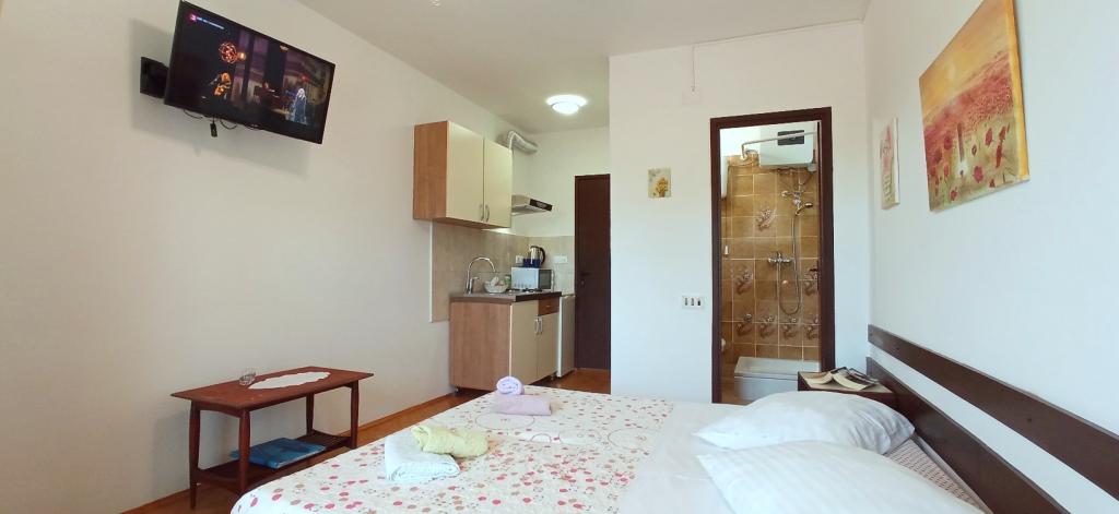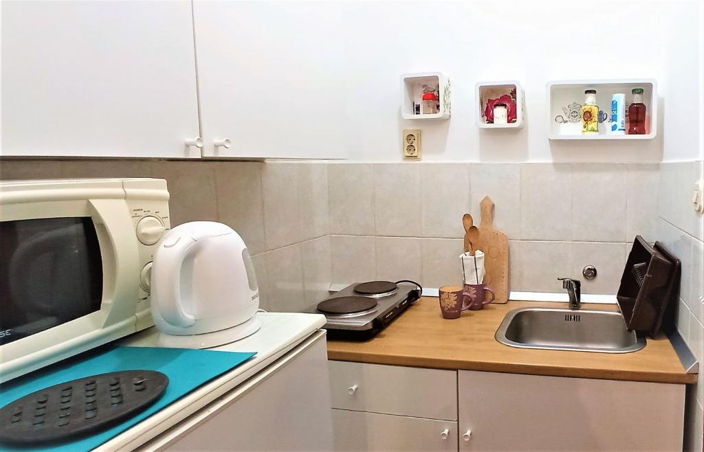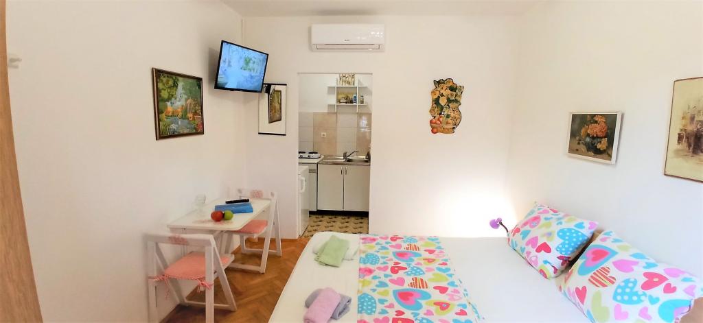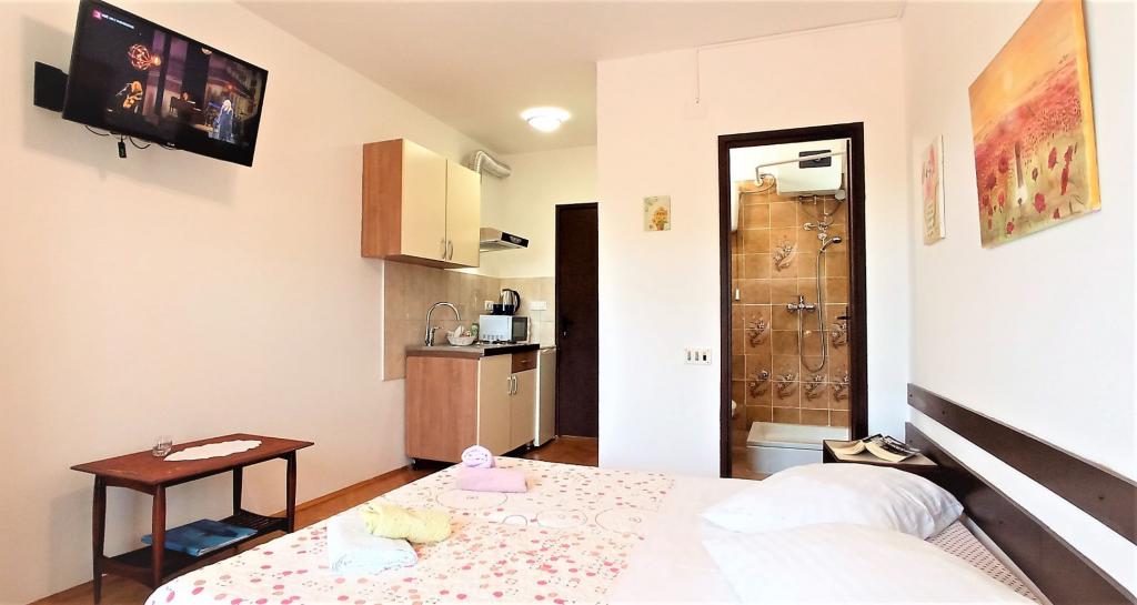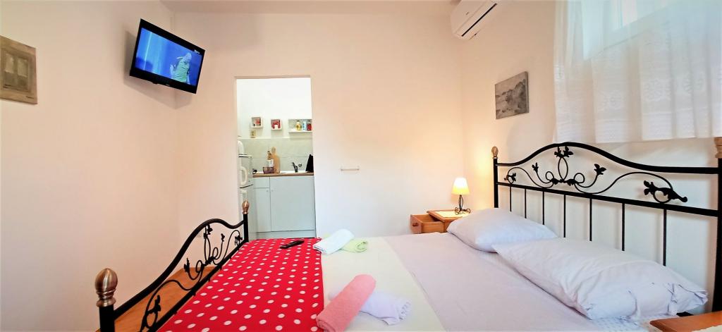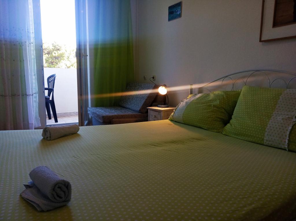 Nicely decorated, and fully equipped rooms. Really close to beaches. Owner says that distance to the sea is 80 meters, but it is less