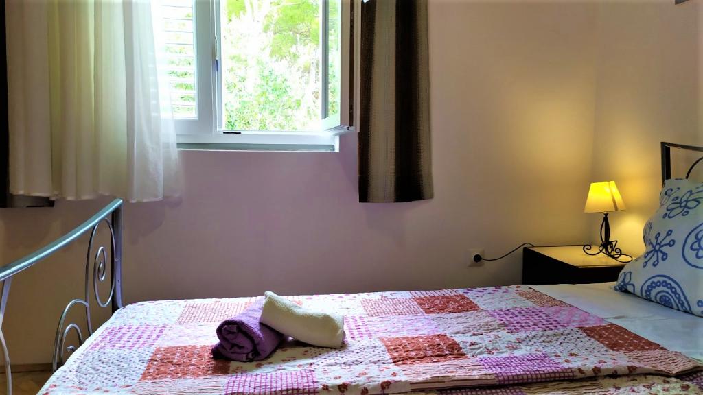The house is situated in a quiet part of Jelsa near sea and next to a pine forest. The sea is about 70 m from the house, and several pebble beaches and one sandy beach is only a few minutes from home. In our house we offer: 3 studio apartments. Each studio apartment has a bedroom, bathroom, kitchenette and a table with chairs in front of the apartment and next to the garden. One studio apartment has a large terrace. 2 rooms. Each has its own toilet, kitchen and balcony with table and chairs and sea view. It is also possible to rent both rooms as an apartment because they have one common entrance which is separated from the other apartments. Apartment with 2 bedrooms, 2 bathrooms, living room, kitchen, dining room, balcony with sea view and terrace with table and chairs in front of the apartment. There is an extra bed in one room and sofa in the living room which can be turned into a bed for two people.