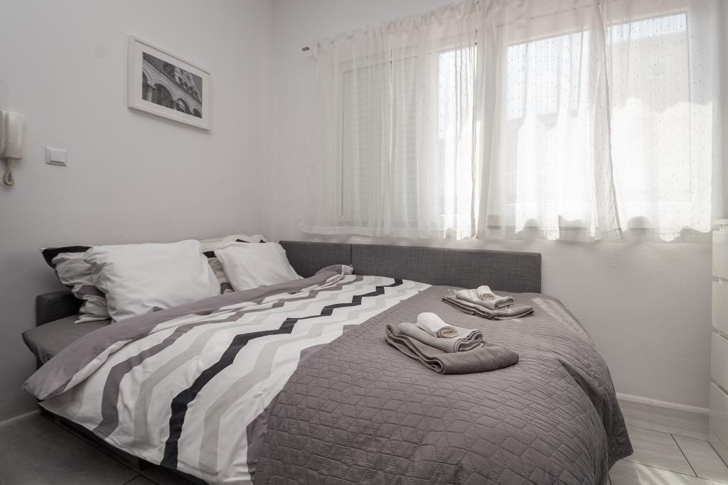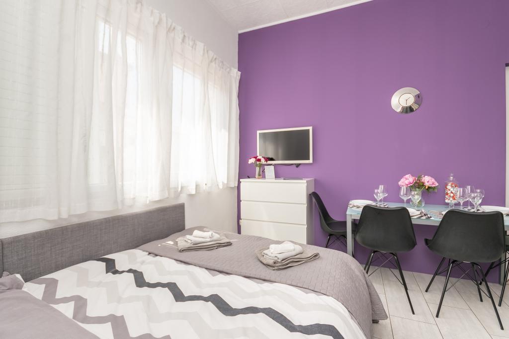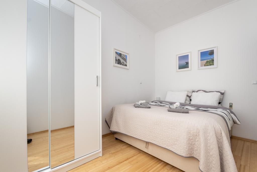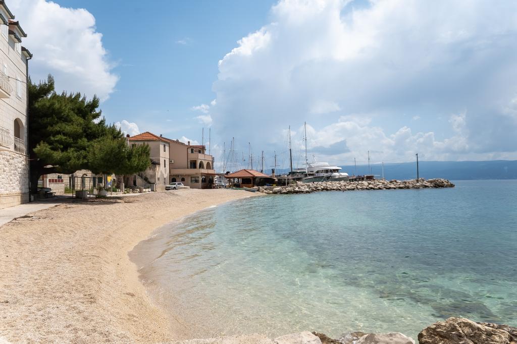 Apartment "B" is located in the small town of Sumpetar Jesenice, not far from Split and Omiš. It is 20 steps away from the pebble beach. The apartment is part of a family house located along the main road leading to Dubrovnik. It consists of a bedroom, kitchen and living room, toilet and shared balcony. It is suitable for 4 people. Parking and wi-fi are free.