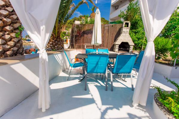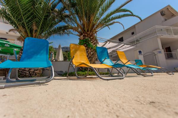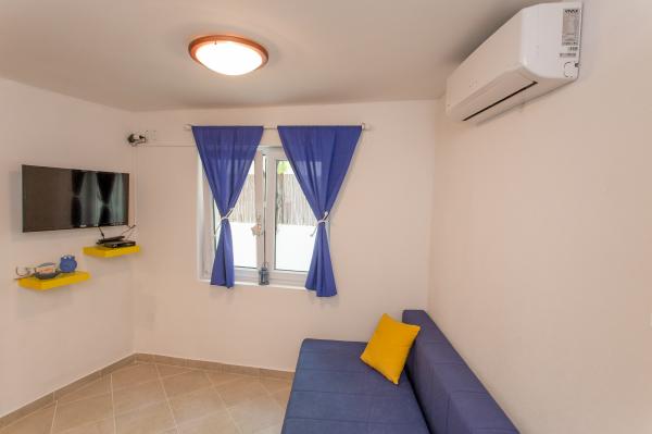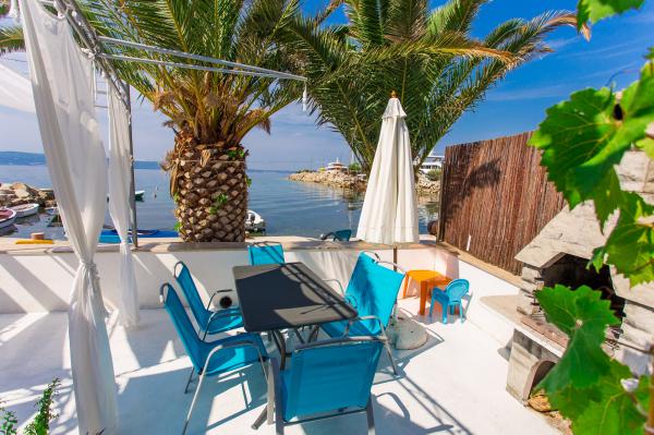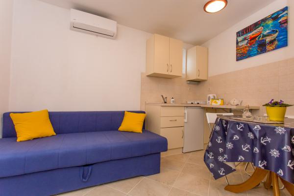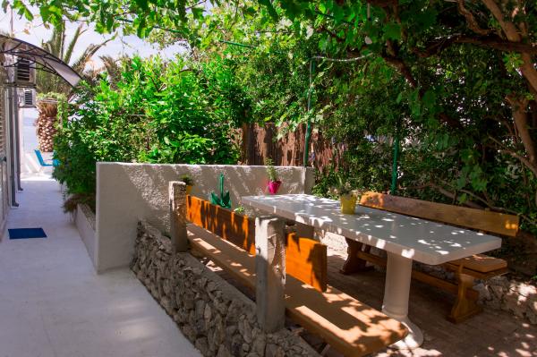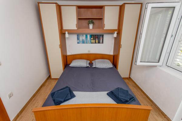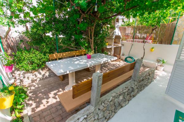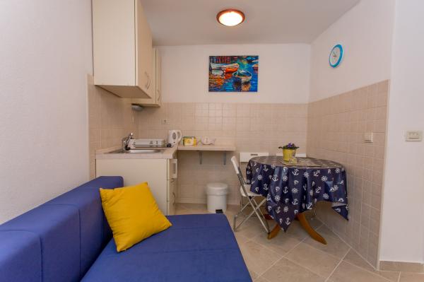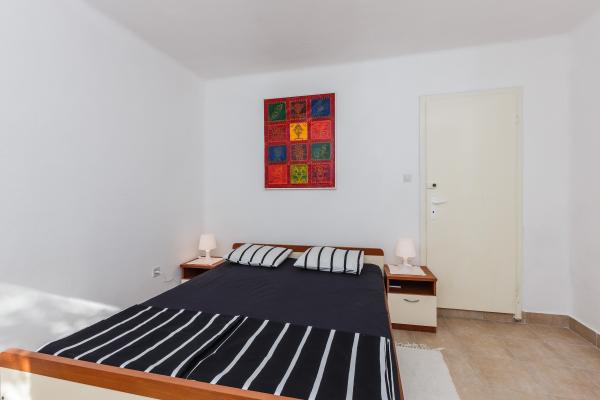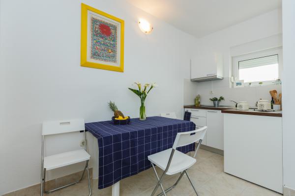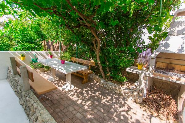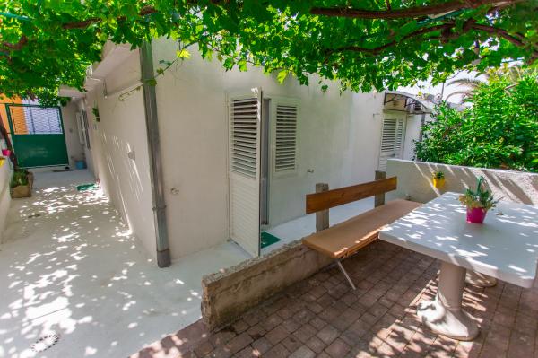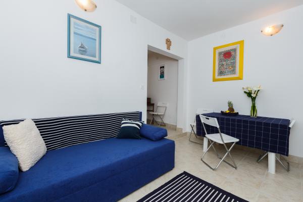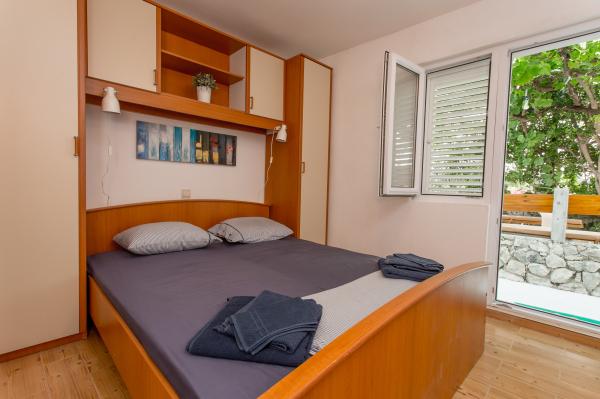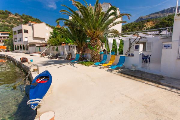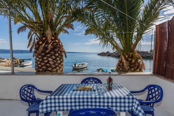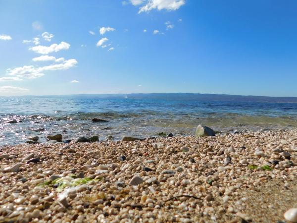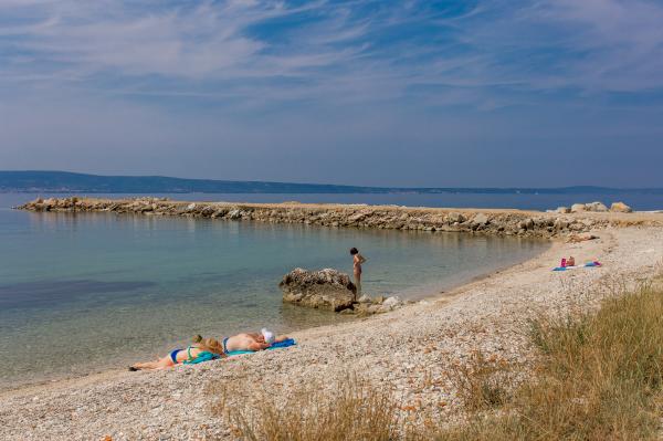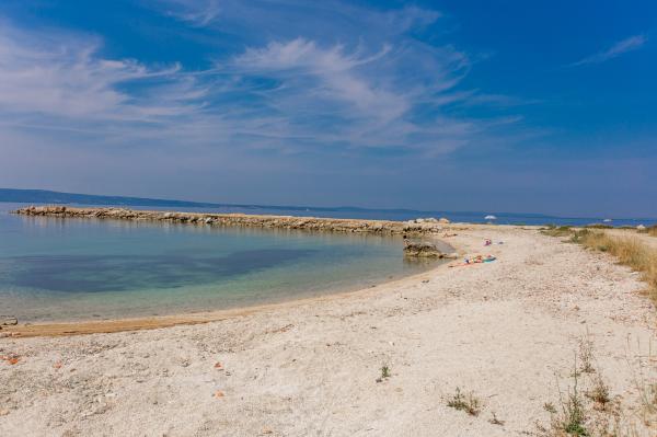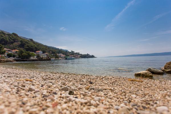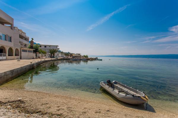 We booked this lovely little apartment last minute and were very happy to find it just as nice as the photos suggest. The apartment is in a lovely sheltered, private bay with calm water and lovely swimming. No tourists, just locals having the occasional swim or socialising in the evening sun. Bobbing boats, water and a perfectly located pontoon make for a relaxing setting. Borjena, the apartment owner, lives next door and was a fantastic and very generous host. Each day she would bring us local delicacies such as freshly grilled sardines, figs, juicy peaches and homemade apricot cake. Delicious! Although she lives very close to the apartment we always felt that we were given space and privacy during our stay. Although Borjena speaks little English, there was always someone on hand (or google translate) to help us find out any information we needed. The apartment itself was very clean and had everything you\'d need for a week\'s holiday. We were without transport but the bus was very convenient (although the road is quite loud) and it is easy to get to Split and Omis - about 20 minutes. There are only a couple of restaurants in the area but Split and Omis have plenty of decent places to eat. Although we often cooked fish and veg on the outside grill. We also found the location a great place to be based for exploring the more touristy islands of Brac and Hvar. If you are looking for a relaxing and authentic Croatian holiday then this is the place to go!