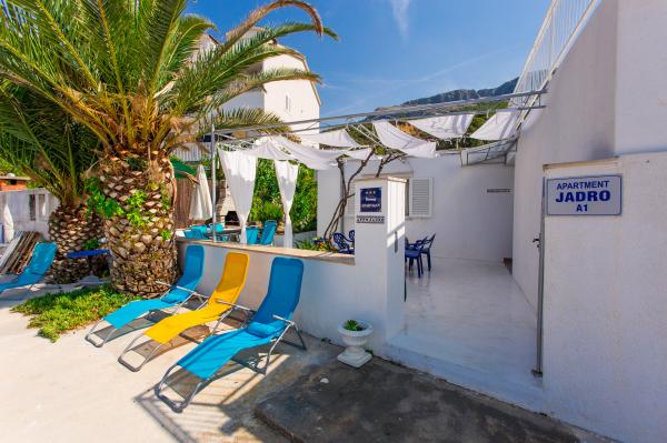 Fully equipped apartment in a quiet area of Jesenice, between Split and Omiš, first row to the sea, ideal for a relaxing vacation with a choice of several small beaches for swimming. The appearance of the environment and natural resources are variable depending on the season and other natural phenomena.