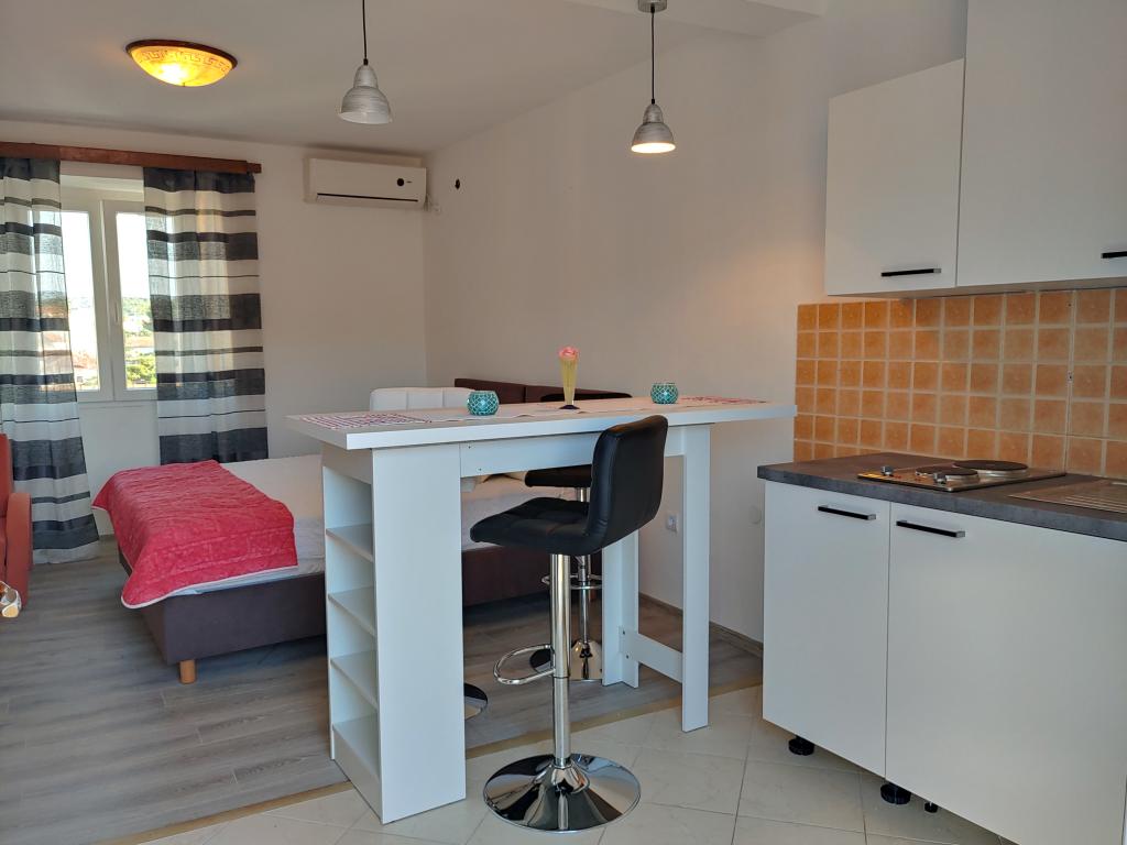 Located only 40 meters from the sea, Apartments Školjka offer a pleasant stay in a stone house decorated in Mediterranean style. Apartments are equipped with air conditioning, Sat-TV, free WiFi / Internet. In the yard there is a barbecue that can be used. In addition, there are bicycles available. Apartments are located 100 meters from the center of town. Beaches are 300 meters away. Krka National Park is 40 minutes away by car. Zadar Airport is a 1 hour drive away.