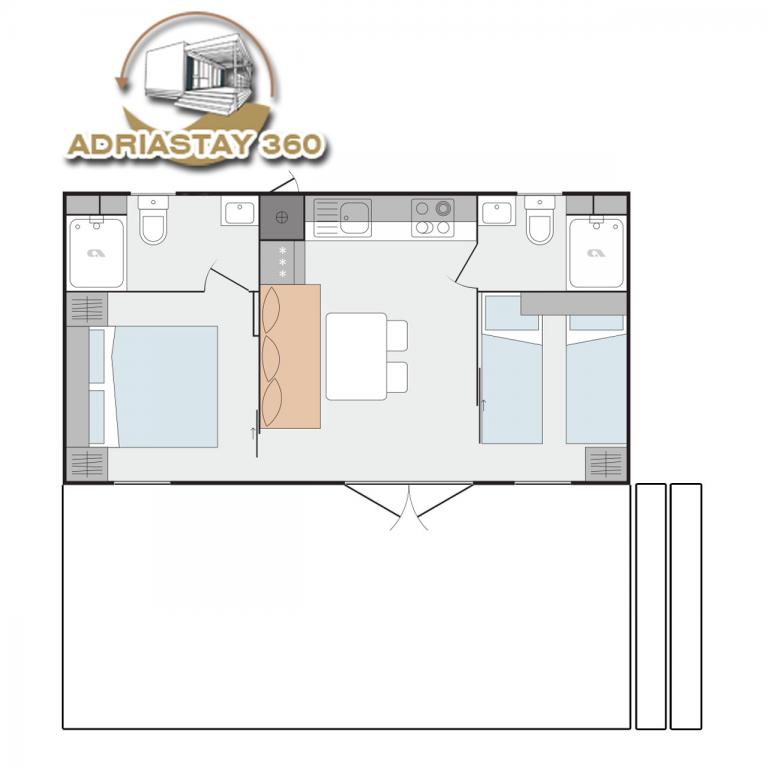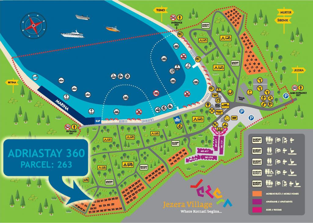 The Adria M-Line mobile home is located on the island of Murter in the new part of the Jezera Lovišća camp. In the morning, you can wake up to the sunrise, while the rest of the day is in the shade of fragrant pines and olive trees. Terraces, cafe, massage center, sauna, hairdresser, restaurant with daily meals, diving center, windsurfing school and all facilities on the beautiful beach and crystal clear sea are available to you as a guest in our M-Line mobile home. If you have a boat in a separate part of the bay, you can use the moorings and the ramp to launch the boat into the sea. The fact that there are several national parks in all directions (360) shows how beautiful your vacation spot is. NP Kornati, NP Krka, NP Paklenica and a hundred equally beautiful islands. Choose one of the many organized boat trips from the island.