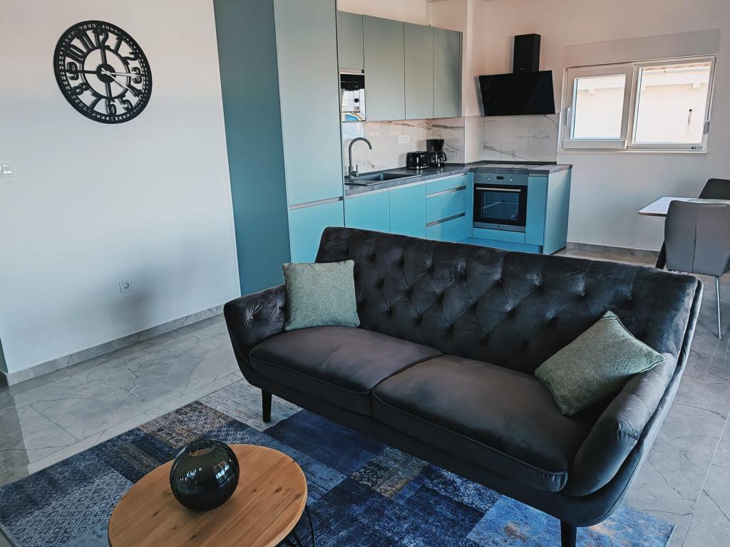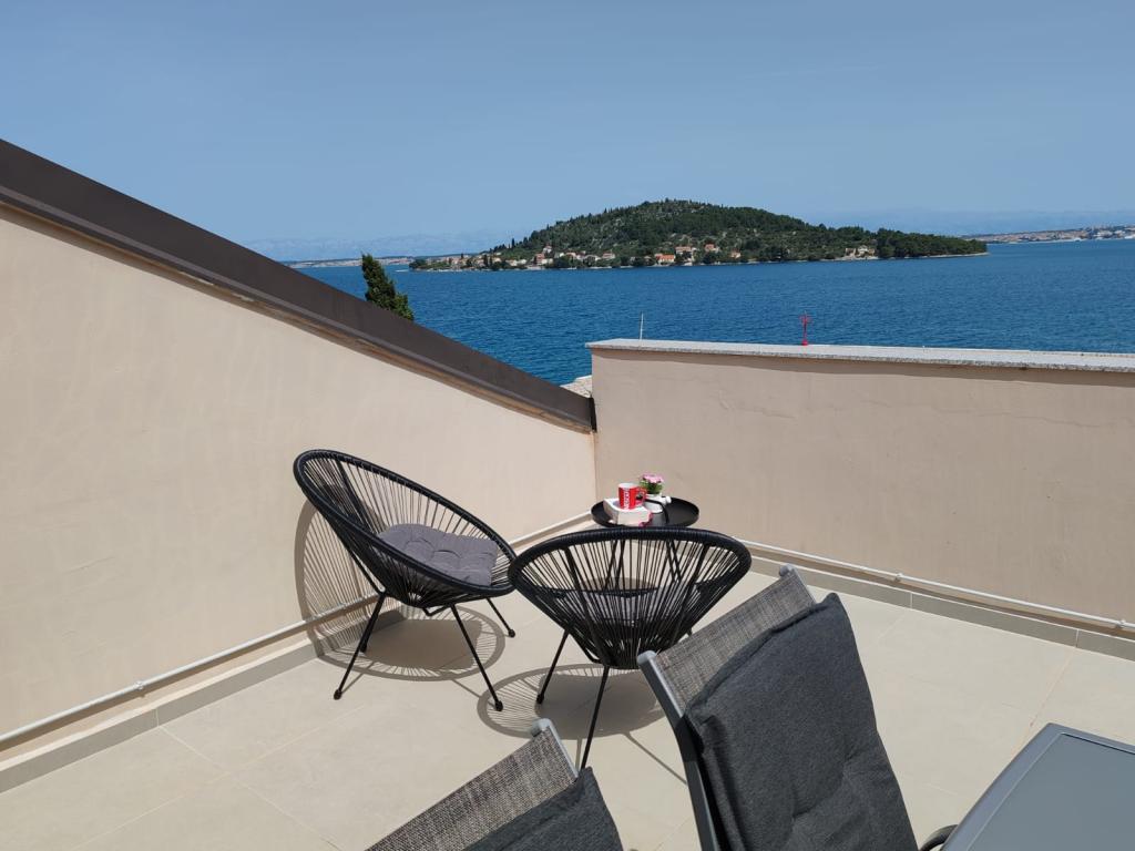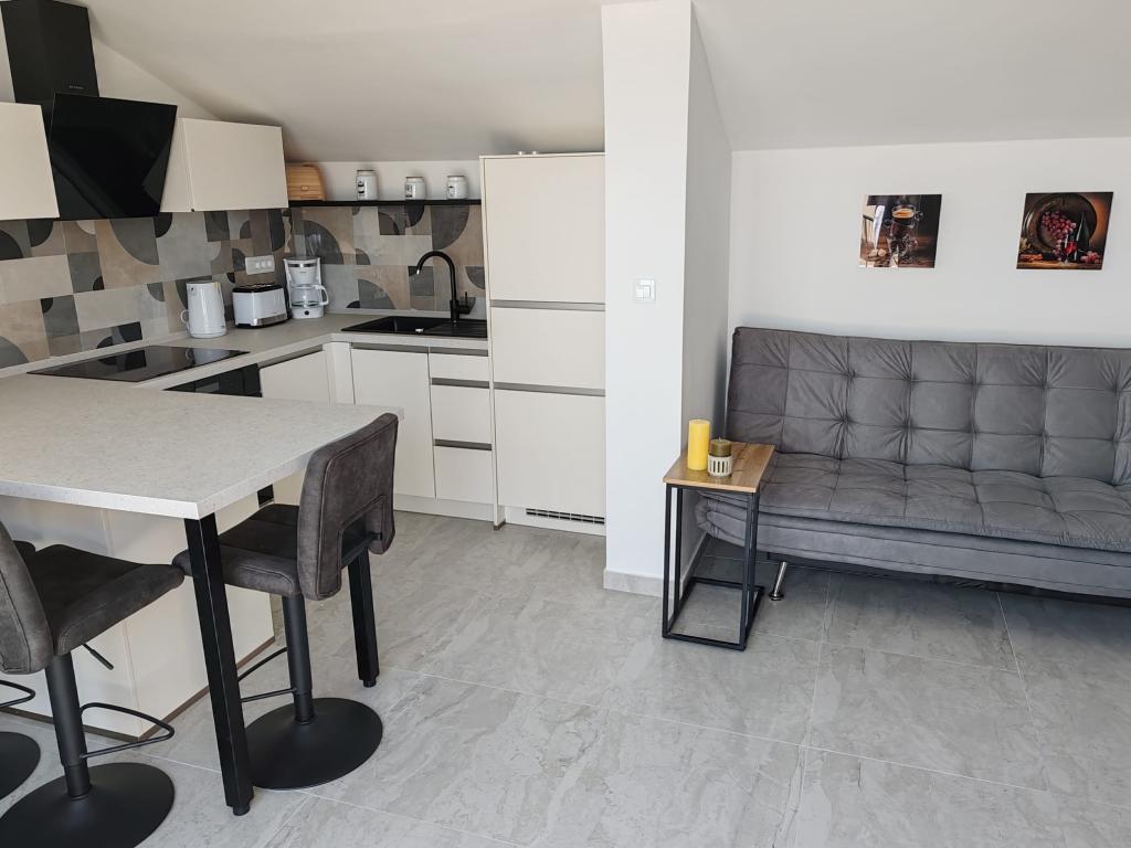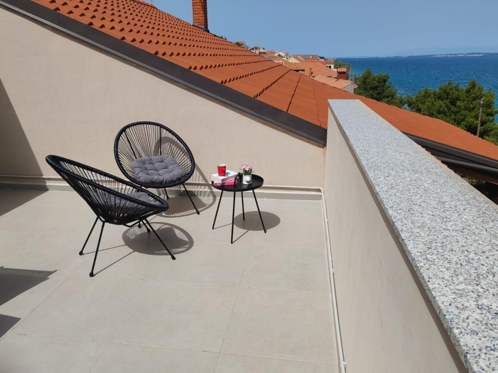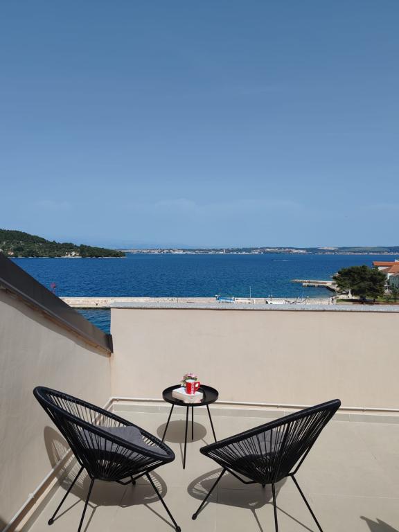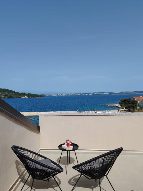 Apartment Nina (A6) is located in the quiet village of Kali, on the island of Ugljan. The apartment is 100 m from the beach, and the terrace offers a view of the sea, the island of Ošljak, Zadar and the Zadar Channel. The advantage is a completely new and comfortable apartment with 3 bedrooms, a large living room, a kitchen and 2 large bathrooms. To make your stay as pleasant as possible, relax and enjoy the covered terrace. For your baby, we have a cot and a high chair. Minimum stay 4 days. Sunny Apartment (A2) is a new apartment with 1 bedroom, kitchen and living room, it has a bathroom and a separate toilet. The balcony offers a beautiful view of the sea. Minimum stay 3 days. Azure Apartment (A4) is ideal for a peaceful holiday with family or friends. Enjoy the incredible sea view from the spacious terrace, relax in a comfortable interior with two bedrooms and a modern kitchen. Located just a two-minute walk from the beach. An extra bed and a cot are available on request. Minimum stay 4 days.