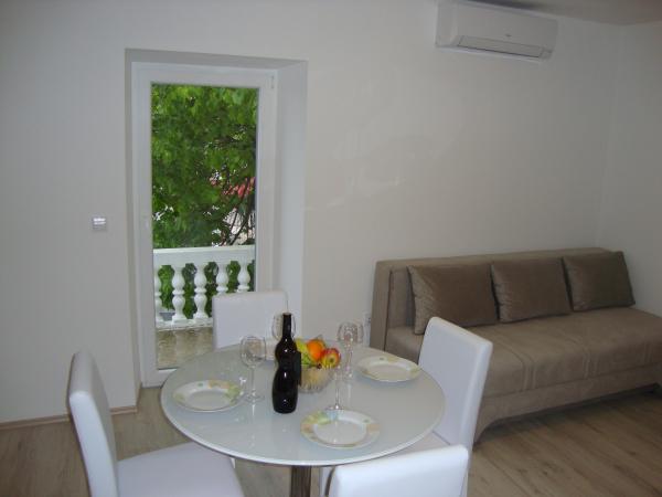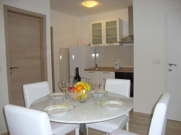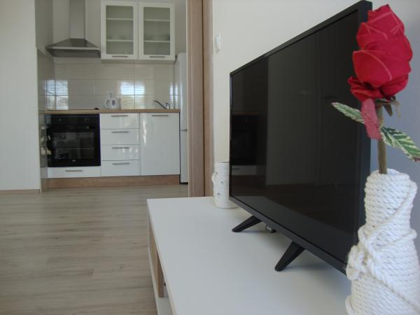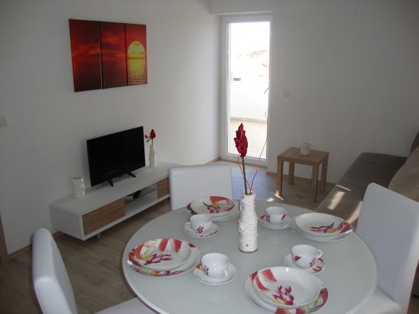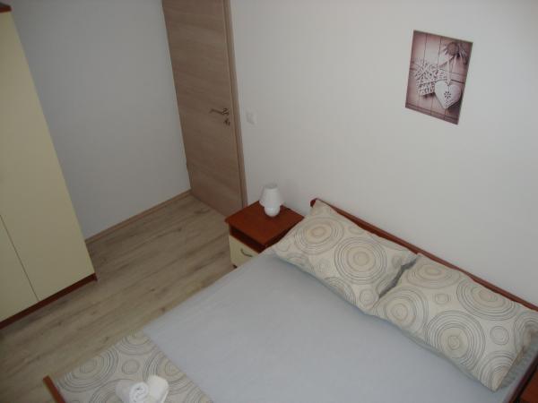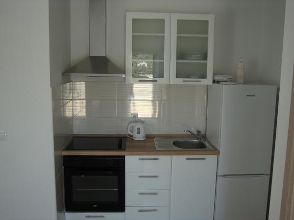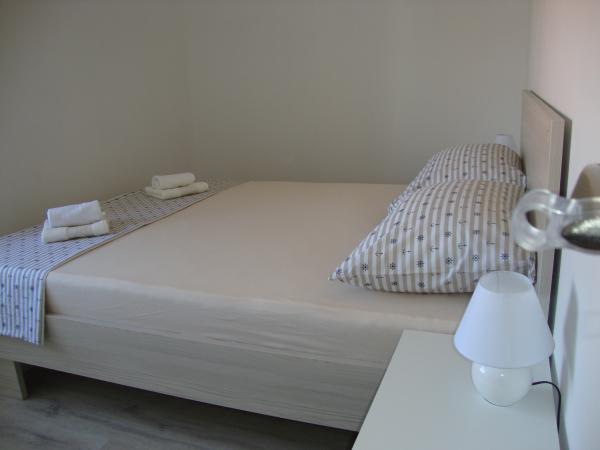Apartments Longin are on the 1st floor of the house and are ideal for two families. They are connected to a small corridor with entrance door from the house. The owners live on the ground floor of the house, and the yard, olive grove and indoor fireplace are available to the guests. Apartment LUCY has 31 m2 and a terrace of 20 m2, and apartment LEONA has 31 m2 and balcony of 4 m2. Next to the house there is a mini-market. Beaches are 300m and 800m away and both have free parking, showers, and food and beverage facilities. The island of Ugljan is connected to Zadar with fast-freight lines every hour so that Zadar is not far away. Apartments LONGIN are located at the entrance to Kali. Two smaller public free parking spaces are 50m away from the apartment, while there is a parking space next to the building.