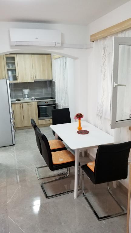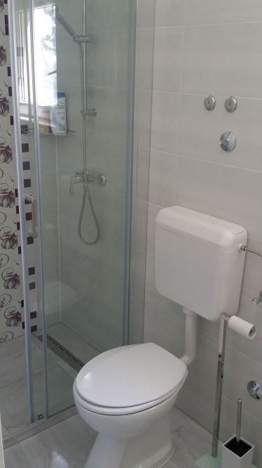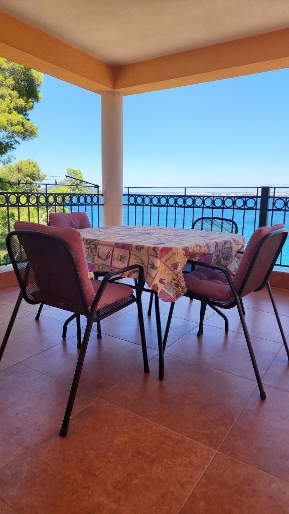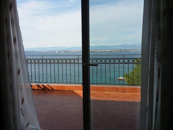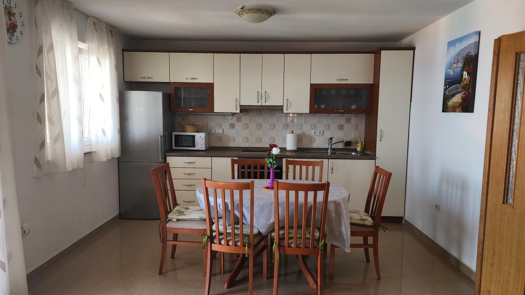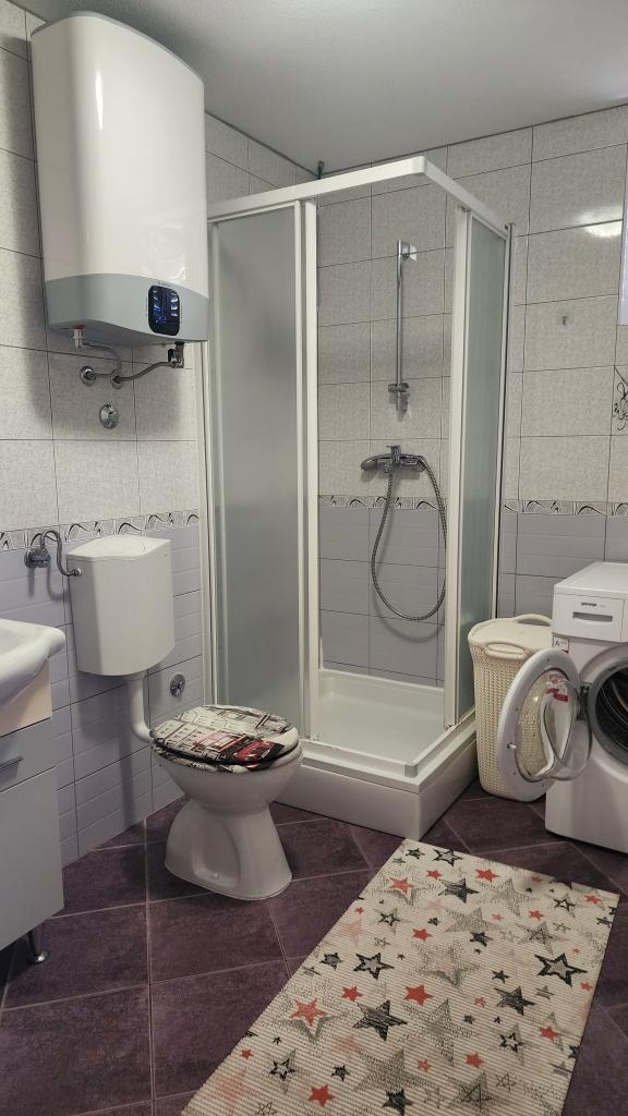 We stayed in a studio apartment with the most beautiful view. The terrace is really huge and has a covered part (roof), but otherwise there is no direct sun. The studio is located right at the top, which is a big advantage when "moving" from and to the apartment - there are garages and parking spaces for cars at the top. The apartment is located right next to the main road, which is not busy even in high season. You can reach the store by car in 2 minutes. The studio in which we stayed for 10 days was wonderful. Everything extra clean and ready for your arrival. Very nicely furnished, you can find everything you need in it! All equipment is of high quality and new, or very, very little used. All costs (cleaning, registration fee, tax and other) are included in the price of the stay. An outdoor shower and a barbecue fireplace are also available for shared use. On the common terrace you can play table tennis, darts, you can borrow a sup. The owners are really so nice and kind, they are wonderful! I wrote to them via email and they answered me immediately and in my language! It happened that two families applied for the same apartment at the same time (one by phone, one by email). Therefore, the owner asked her son if he could give us his apartment (studio), for which I am really very very grateful! The beach is very close, only a few meters, but there are steps, but it is not as bad as it looks in the pictures. The immediate first beach is concrete, and 10 meters further you have sand and pebbles, also a well-kept and clean beach. The beach is not so crowded, sometimes we were alone, which really surprised me. It is also accessible by car! The sea is really clean, turquoise in color, you can see 15 meters deep! The water is warm, it was 25-26 degrees. We are very satisfied with the holiday and the choice, and we will come back! If you want top owners, an impeccable apartment, peace and clean sea, this apartment is the best choice!