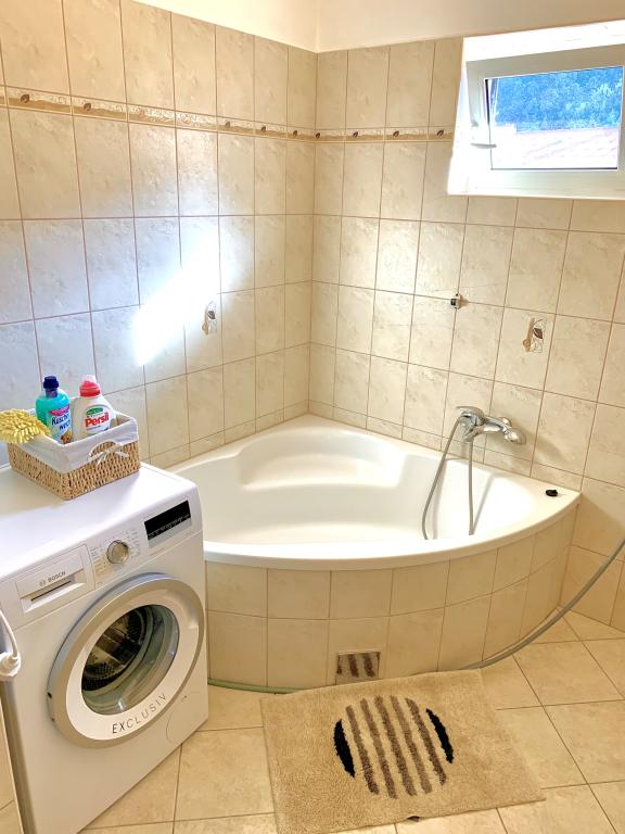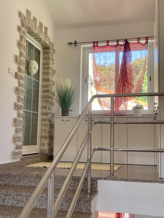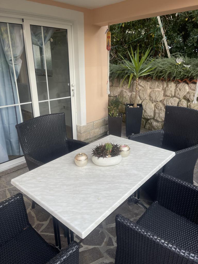 This summer we stayed for about 3 weeks with several families throughout the house. It was our 1st trip to the island of Rab and we are thrilled! Marija and her family gave us a warm welcome and were always very friendly, we were happy to chat with everyone. A service even with fresh towels and bed linen. You can even use their washing machine on request. If you want, you can even rent a boat from your son Mario or let yourself be taken to small bays. The house is very well maintained and is kept clean every day. The house is tucked away at the back, but you still get the sea air. All apartments have air conditioning in the living area, for the smaller apartments the air conditioning is sufficient and top. Unfortunately, the air conditioning for the 6-person apartment on the 1st floor only cools the living room, for the bedrooms there is no longer any cool air. At the beginning of our holiday, no air conditioning was necessary, because at night cool air came into the rooms, if it didn't cool down at night, it was already very warm. Facilities in the accommodations were very good, everything was plentiful, if you needed something just ask Marija and you got it. The pool area was also very nice, but there are no shaded areas (we had brought umbrellas with us), we used the pool early in the morning or late in the afternoon. There was also a wonderful covered barbecue area, we asked Marija beforehand if it was possible to barbecue, so that everyone in the house had the opportunity to use it. A few meters to the sea, port, cafes and shops, so we could leave the car behind. It was a perfect vacation we will be back. Thanks for this nice time