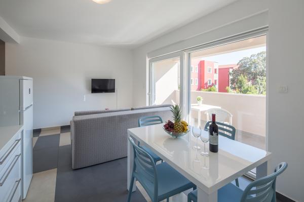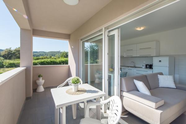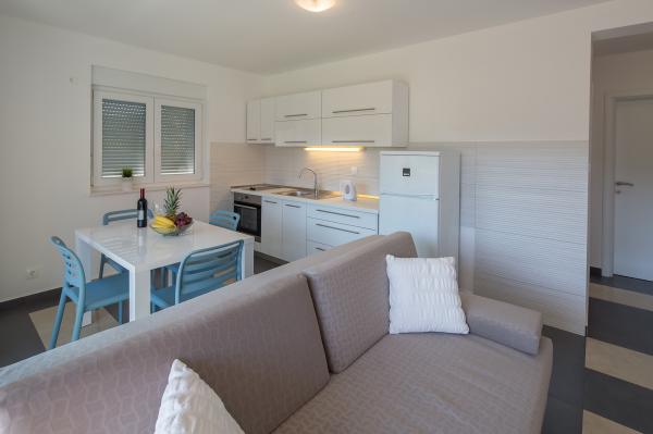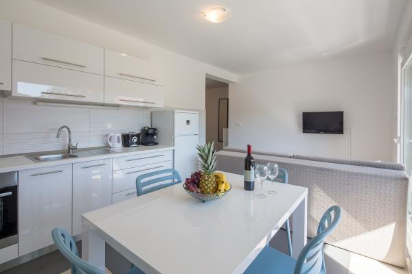 Modern apartment, fully newly furnished in a beautiful and peaceful part of the sunny island. The facility consists of 3 apartments. Two of the apartments are 50 square meters and provide accommodation for up to 4 people (2 2). They consist of a bedroom with a spacious double bed, kitchen, dining room and sofa bed, bathroom with bath and a large balcony with table and chairs. The third apartment of 70 square meters is located on two floors and provides accommodation for up to 6 people (4 2). It contains two rooms. In one room is a spacious double bed in another room on the first floor two single beds and a large terrace with sun beds and sea views. The apartment has a kitchen, dining room and sofa bed, bathroom with bath and a balcony with table and chairs. Available for guests: - Free internet - Cable TV with more than 200 programs - Fully equipped kitchen - Air conditioning - iron - hairdryer - Free parking WELCOME!!!!