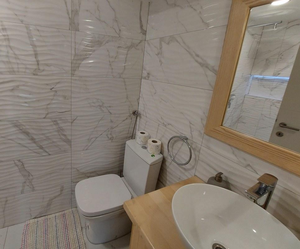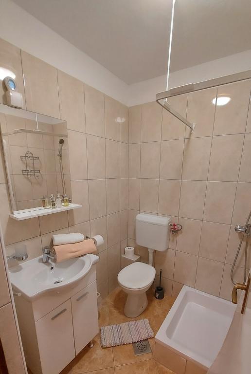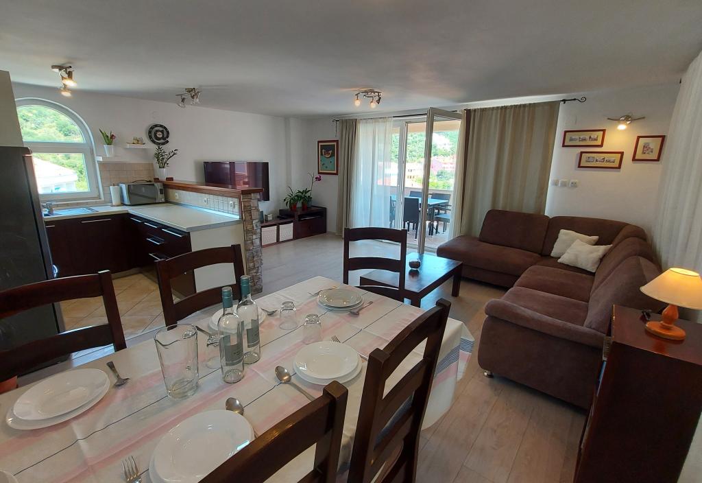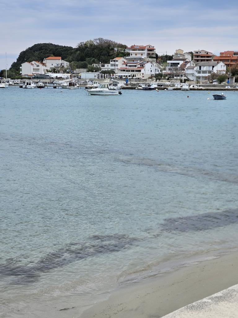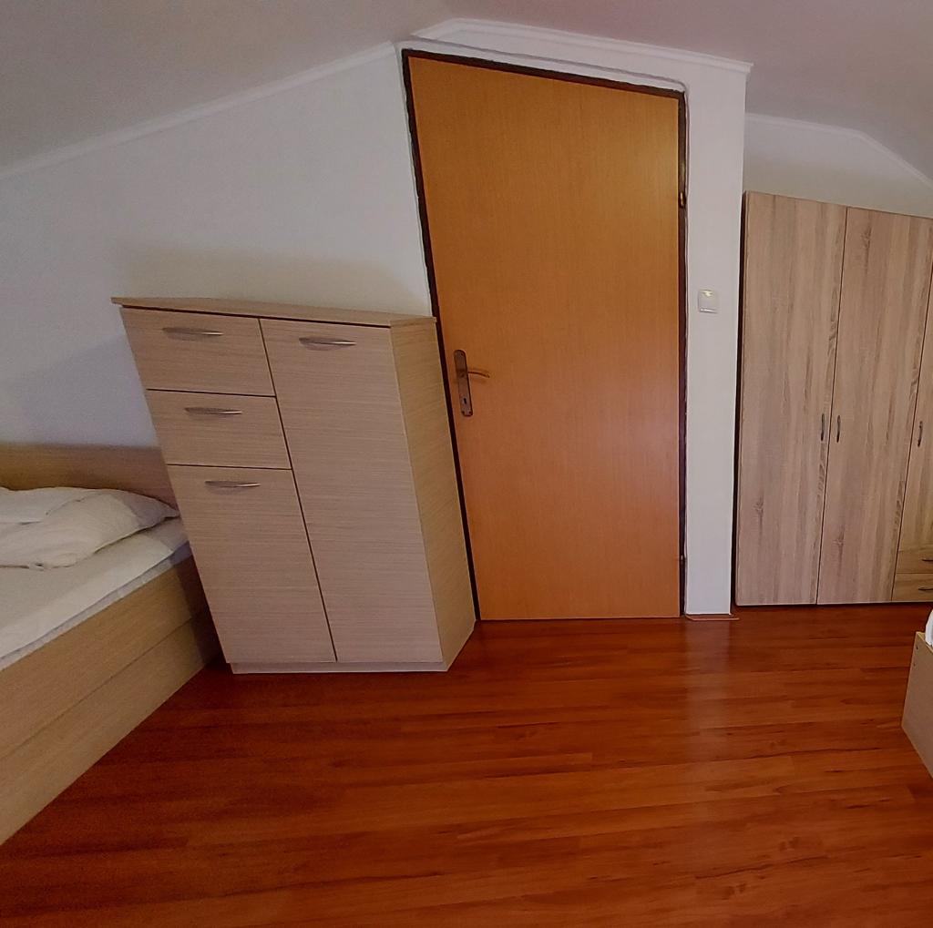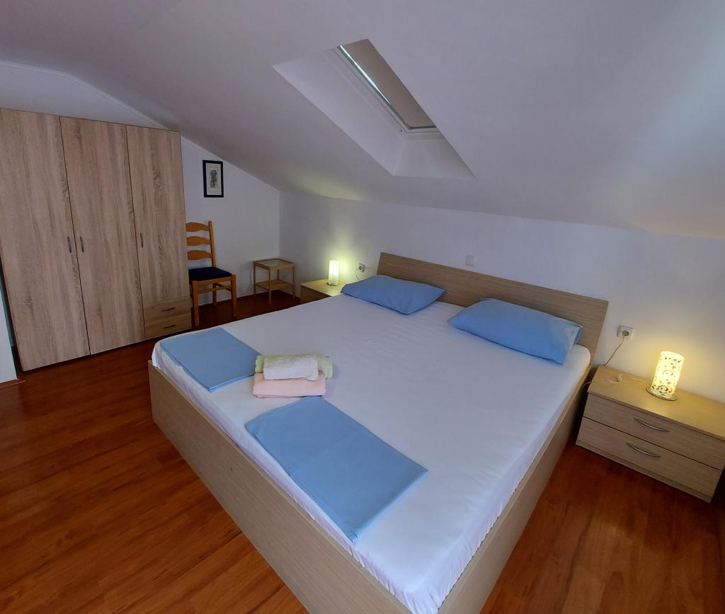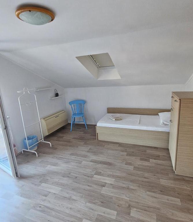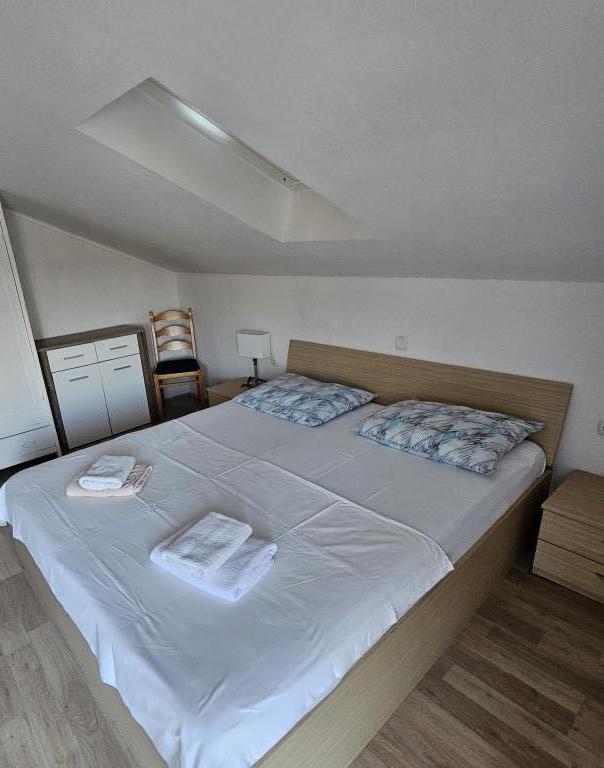 Family house with a fully equipped three-bedroom apartment on the second floor. Beautiful panoramic sea view. The apartment has a covered terrace accessed from the living room, and on the same floor there are two more bedrooms with bathrooms (entrance from the bedroom). Upstairs in the attic is the third bedroom from which you can access an uncovered terrace also with a sea view. Next to the room is a separate bathroom with a washing machine. The first beach is a 5-minute walk from the house, the other beaches are 100-200m away and more. Not far from the house is a promenade by the sea, a children's playground, a tennis court, a basketball court, a bowling alley, boat rental, bicycles, mopeds. Grocery store, cafe, exchange office, massage parlor, restaurant, pizzeria, small harbor. Family house with an offer for a peaceful and beautiful vacation.