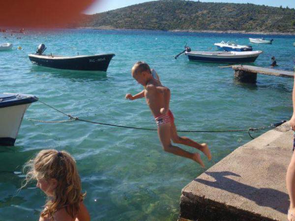 Very nice are the first words with which to describe our vacation this year. Very good and quality wine that has greeted on arrival who wants it can get a little more sharp, thence just helpfulness of the owners, as you may only want, but neither the least intrusive. The beach is great, Concrete, where you're constantly free and you do not need to wear towels early in the morning, then you've got the space .Voda is very clean and deep, good swimmers there are no restrictions for swimming, because you can swim without fear several hundred meters from the coast, exit from the water is installed many stairs and railings. However, if anyone wants to slow transition in deep water is only 50 meters away the stony beach. The place is very quiet, so perfect to relax after stressful days at work. The installation was pleased the whole family and I note that I will still come back with the greatest pleasure. Andel and Djuro, thank you for everything. Marjan, Renata, David, Tina and Michael