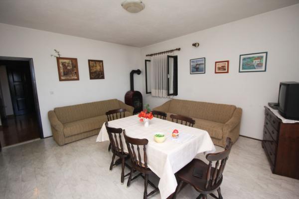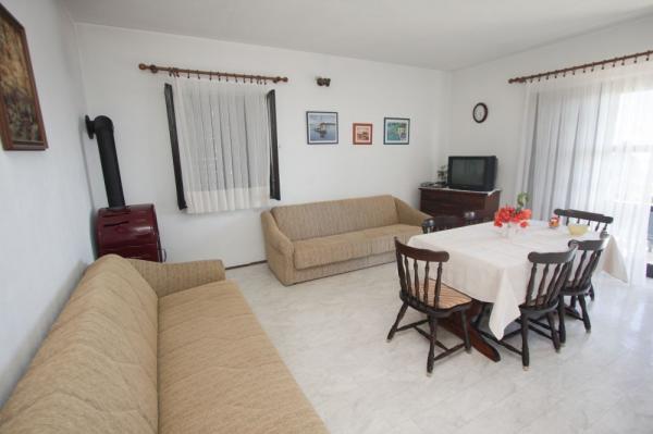 The scenic position of the Canary, emerald water, very spacious, clean apartment with full facilities of the rooms and kitchen. Terrace with two tables can comfortably accommodate 8 people. In addition, there is a covered parking place and an external shower. Very nice, helpful and without conflicting home owners. The shop is a bit of a road, but fresh bread and milk is delivered daily under the house. Gravel beach right next to the apartment, second, concrete for about 10 minutes walk.