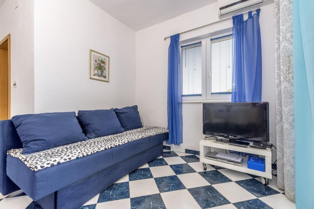 Residential tax is included in price.Nice and fresh apartment, clean, decorated, contains everything you need. The location is close to the sea and this is not propaganda, in fact the beach is about 70 m away. The sea is clean, the entrance is gentle, children can play carefree, the beach is gravel and concrete in the bay, so the water is calm. A cozy town, two pubs and nothing else. Basic shopping can be done in the morning using door-to-door sales. The owners of the apartment are available, friendly and helpful. An ideal place for families with small children and for those who love a quiet holiday. I would highly recommend !! Kind regards,