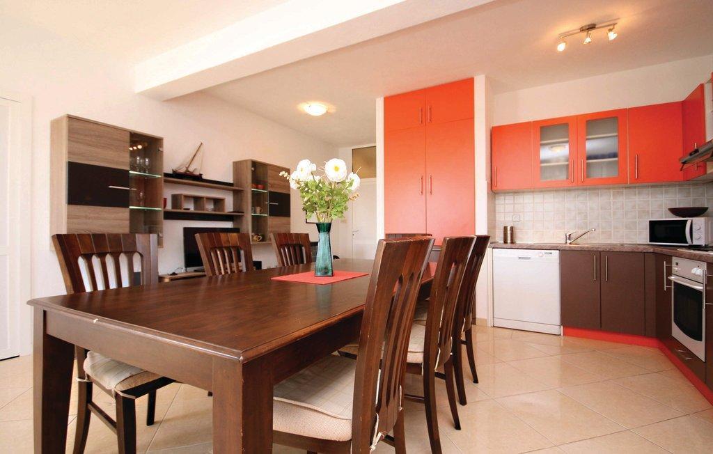 In the small town of Kanica there is a comfortably and tastefully decorated holiday house. It spreads over two floors connected by external stairs and is thus ideal for two families. From the terrace on the first floor there is a beautiful view of the sea and the picturesque bay. The house with its quiet location and pleasant environment allows a complete and carefree vacation. Simply relax, enjoy wine and prepare barbecue delicacies. You are only a hundred meters away from the sea. The town of Rogoznica is approx. 10 km and offers facilities and entertainment for all generations.
