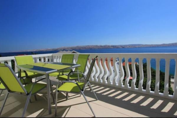 Modern and fully equipped apartments, with beautiful views of the sea and the island of Pag. Quiet location, desirable for family vacations, for those wishing to spend, ferry distance to the island of Pag 20 minutes. The distance from the apartment to the place Karlobag is 5 kilometers, in the courtyard of the apartment a beautiful garden with grill. All three apartments have large and spacious shades with table and chairs and covered sun-shades in the hot days. In the yard there are 2 outdoor shower, which are suitable for outdoor shower after arriving from the beach. Behind the house there is a parking for 2 cars, and in front of the house for 1 car. Apartments surrounded by greenery and plants that give the Primorje atmosphere. Each apartment has a separate entrance and are separated from each other. Homes are always present at the service of their guests.