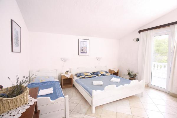 HOUSE CHRISTENSEN Accomodation Karlobag - Ribarica holiday in our house takes everyday stress away. We are situated in a small place called Ribarica near the town of Karlobag under the beautifully mountain range Velebit and vis-a-vis the island of Pag. All those who like nature, Mediterian climate and crystal clean water, will make a good choose to spend their vacation in our apartments. There are 2 APARTMENTS: A. is located on the first floor of a private house, only 250m away from the beach. We offer: cosy and comfortable apartment for 8 2 persons (125 square meters) with large terrace, a completely equipped kitchen with dining room, 3 big triple rooms (extra bed is available on request), 1double room, 3 bathrooms with shower, TV, grill in the garden and parking place. APARTMENT B. is located on ground floor (80 square meters) with 2 big triple rooms, 1 double room, 3 bathrooms with shower. Totally there is 7 bedrooms and 6 bath rooms, the house can accommodate up to 16 peoples.