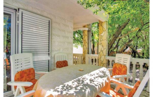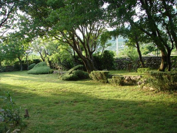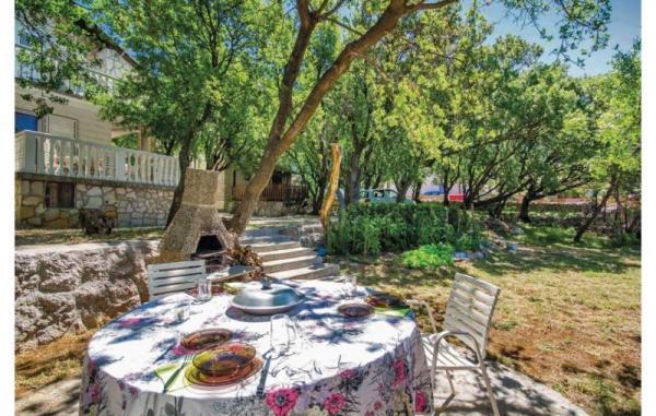 House Pećnik, categorized 3 stars, 110 m2 is situated in a large fenced yard (1100 m2), with lots of shade and only 400 meters from the sea. It is located in a small place Ribarica, at the foot of the Velebit mountain, 5 km north of Karlobag. Mediterranean climate, crystal clear sea, clean and clear blue sky with the galaxy, many etheric plants, natural rocky beaches and the environment almost untouched nature, offer a quiet and relaxing holiday. The house is rented to one group of guests and the owner is in another building so that guests have their peace and privacy. It consists of 4 bedrooms, 4 bathrooms, kitchen, living room, terrace, balcony and had a big garden with barbecue, table tennis and swings for children. Communication between the ground floor and the upper floor of the house was out. A lot of greenery around the house and fenced garden ideal for children's play and relaxing holiday.