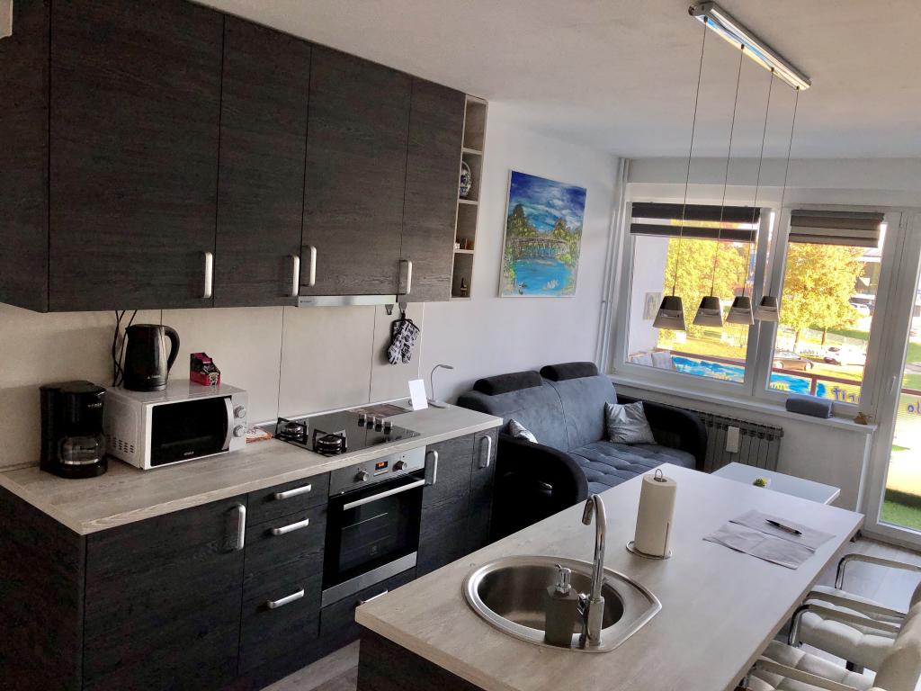 We believe that everyone needs to rest a bit, so we have opened an apartment for your relaxation. The living room has a smart android TV of 55 "(140 cm) 4k and PlayStation 4 pro, 2 gamepads with a bunch of games! It also has a dishwasher with washing tablets and an oven. In the bathroom, except for towels, you will always have shower gel, soap and a hair dryer, so you don't have to pack them for travel.The apartment is only a few minutes walk from the river Korana, Aquatika - the only freshwater aquarium in Croatia and a few minutes walk to the city center. and silence in the apartment regardless of the fact that it is practically in the city center.The smaller room is connected to the master bedroom and has a cot (kinderbet) and toys for the youngest.It is a nice and comfortable place for your stay and great fun! playgrounds are located near the apartment, so we are sure that you will have a great time staying in the apartment Treba Malo Odmorit.