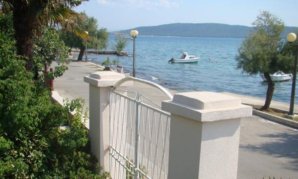 Very nice apartment on the ground floor of the beautiful house. Very clean and neat, well equipped : air conditioning, kitchen, large bathroom, great room ... Very kind owners (picked us up from the station, and at our departure drove us to the station in Split, always ready to help, great people!). At the front of the house there is a garden, vines and place for fully relaxation ... The sea is about 15 m from the house, also two beaches, a bakery and a shop are close. By bus to Trogir or Split is about 15-30 minutes. Hosts are very friendly and helpful at every moment. Generally it's a heaven on the earth!