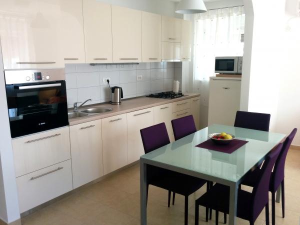Beautiful apartment, modern and fully equipped, by the sea with a nice yard (much nicer than the pictures). Hosts friendly people, we are very satisfied with the service. More clean beach with plenty of shade. A quiet place, has everything you need: supermarket, bakery, restaurants, cafes, fast food .. We enjoyed throughout the holiday. We would strongly recommend. Greetings from Bosnia