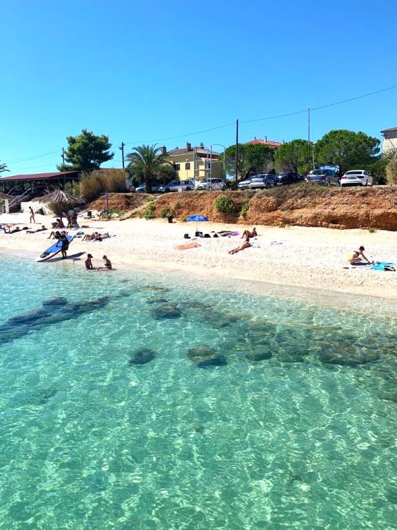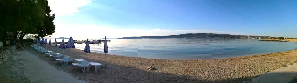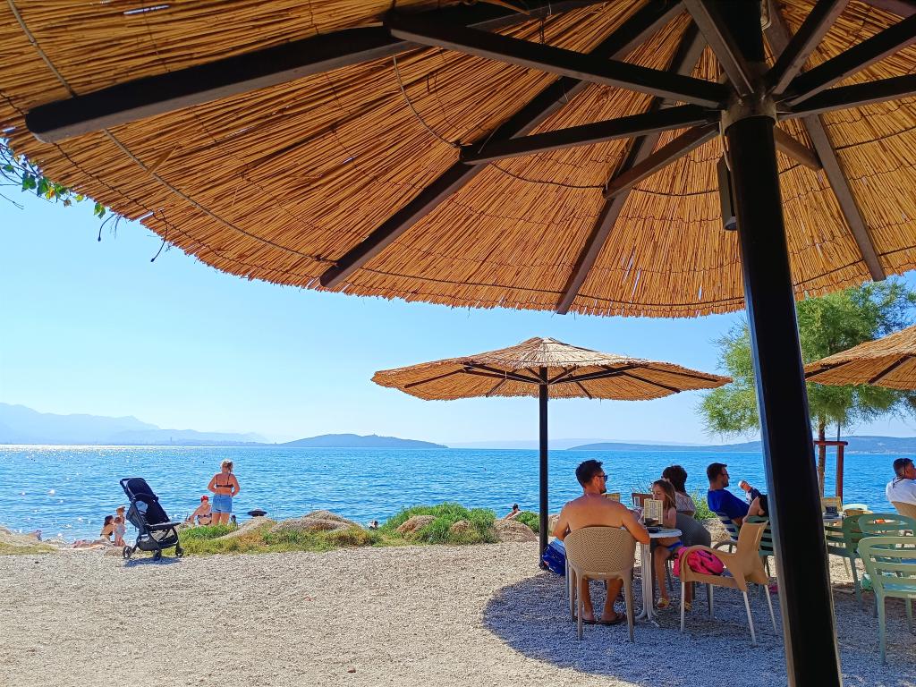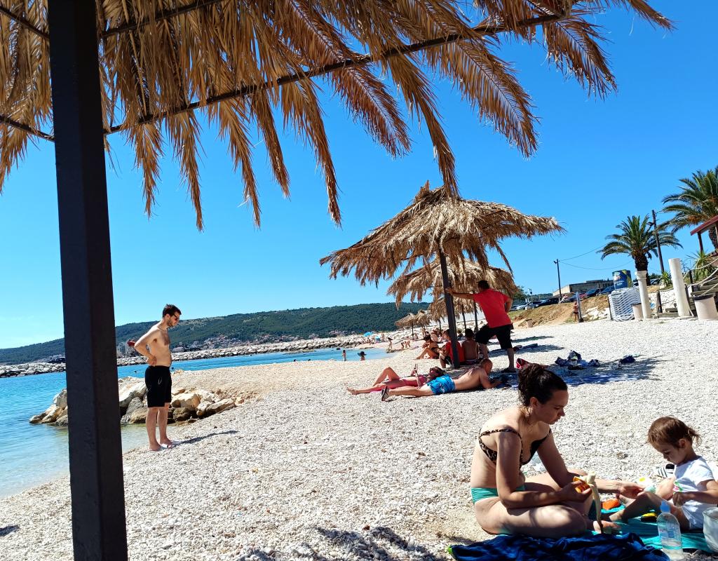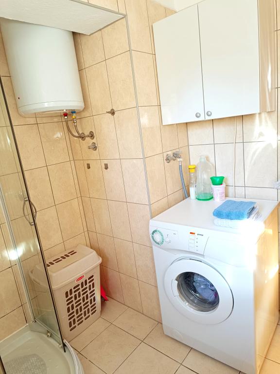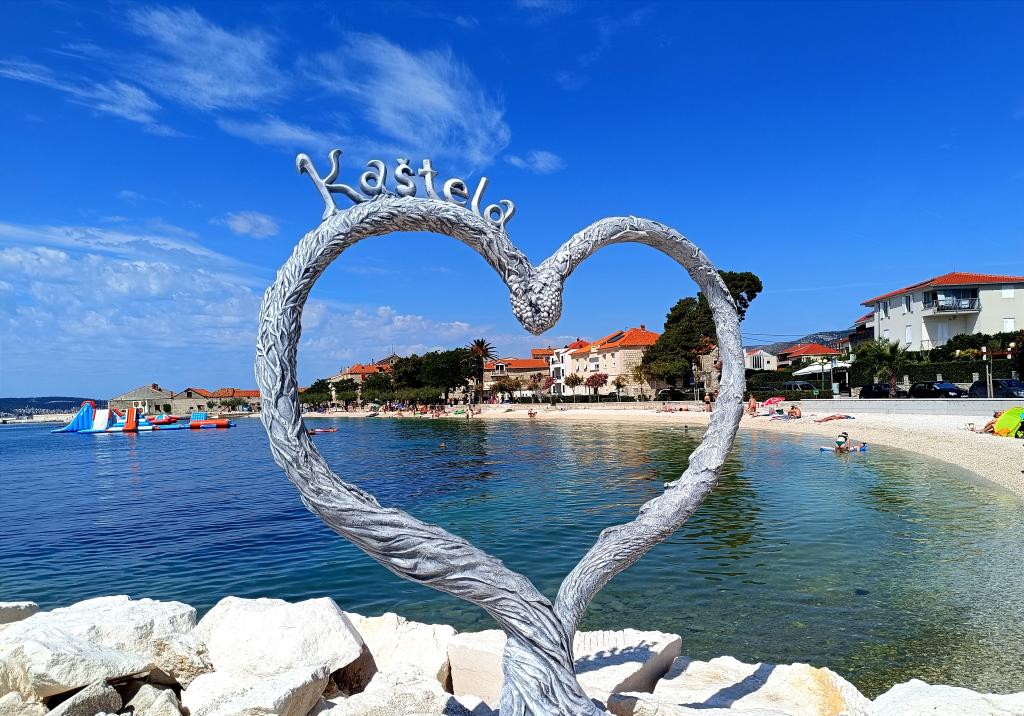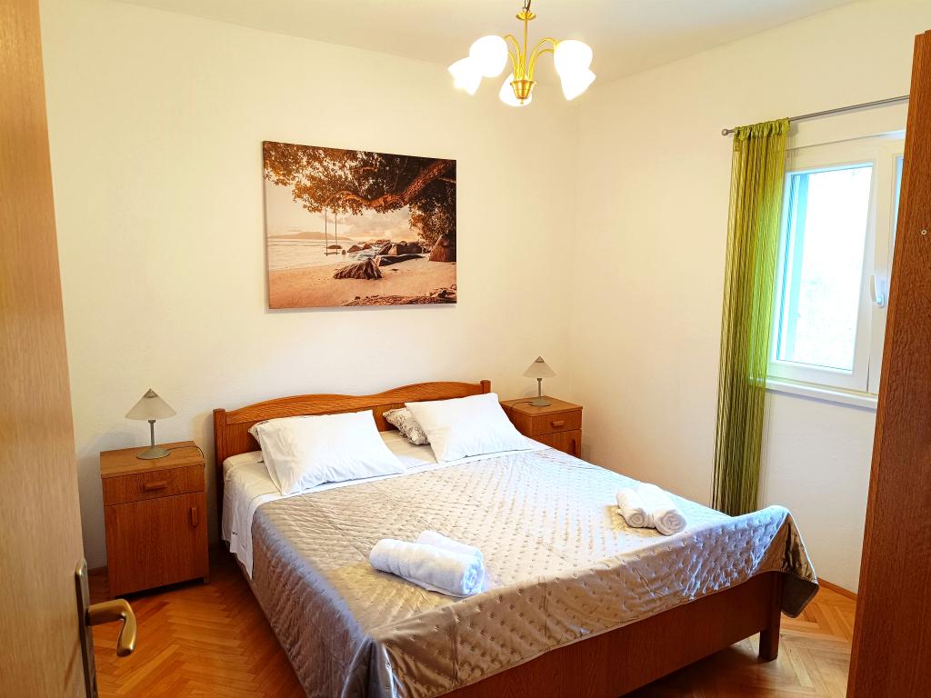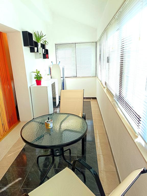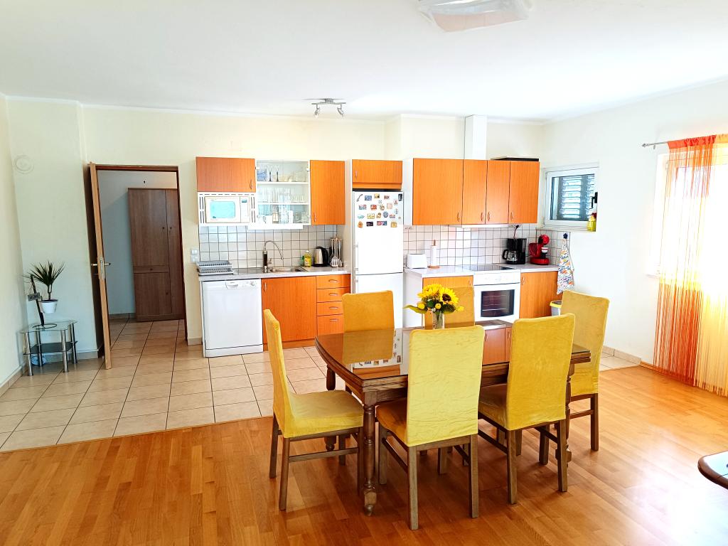 Two-room apartment in Kaštel Štafilić - BILE, size 77 m2, is located in an excellent location: approx. 3 km from the airport, 10 km from the center of Trogir, 16-20 km from the center of Solin and Split. There are several beautiful pebble and clean beaches in the vicinity, and the nearest one is about a 7-minute walk away. The apartment has its own parking for guests, and there are several supermarkets nearby. The apartment is air-conditioned and consists of a well-equipped kitchen, a large living room and a veranda, two bedrooms (one with a double bed, the other with two separate beds), a bathroom and a hallway. Unfortunately, pets are not welcome, nor are noisy parties. It is especially suitable for families with children because of the spacious living room as a place to play. The apartment has an optical, fast, internet connection and a smart TV receiver with many channels. Kaštela is a series of 7 coastal towns, and each one is attractive to guests with its history and interesting things. Along them stretches a beautiful promenade by the sea, which is full of catering options
