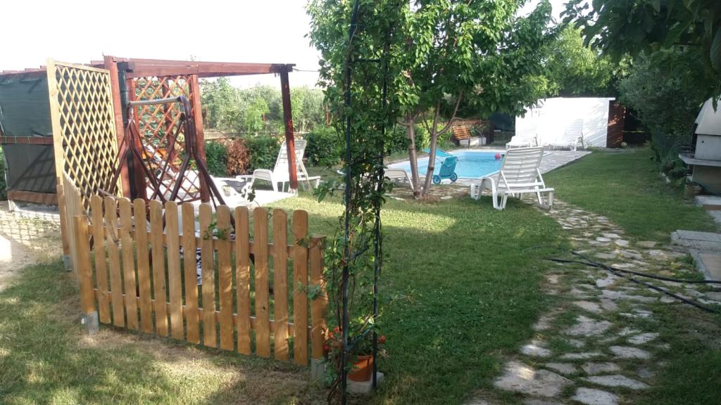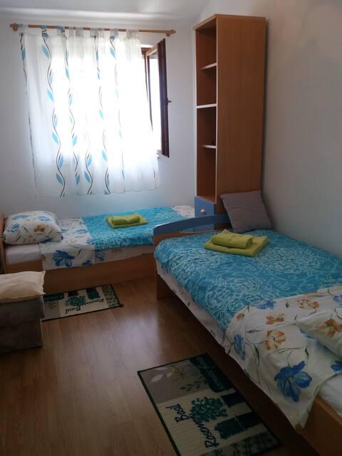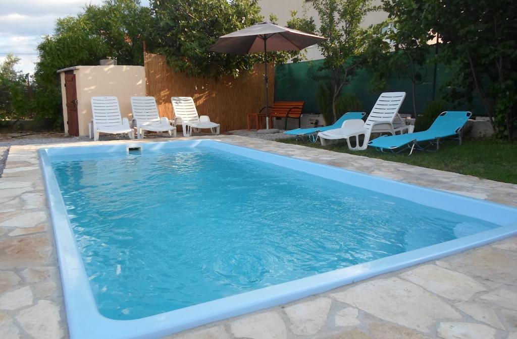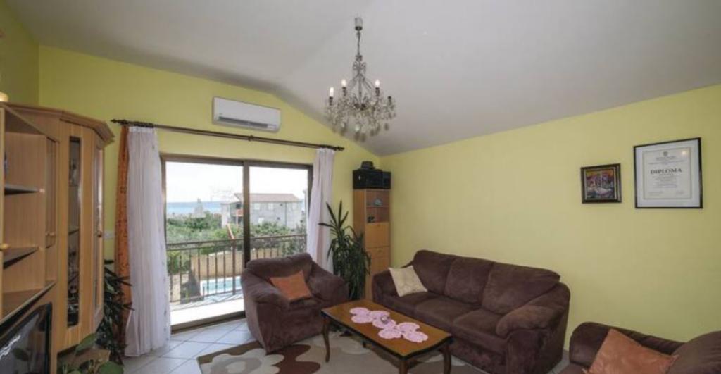 More than 100 m2 of living space, large living room, dining room and kitchen, 3 bedrooms and two bathrooms, the apartment also includes a terrace of 35 m2 and a private pool on the southern part of the garden. The kitchen has a fridge, freezer, oven, electric stove with 4 burners, cutlery, kettle, microwave and drinking water. Each room also has clean linens, wardrobes, iron and ironing board, mirrors. In the living room there is SAT TV, air conditioning and fast WiFi (Internet). The bathroom has a washing machine, hair dryer, towels, shampoo, etc. There is also an open fireplace that is ideal for a barbecue. The house also has an orchard and two parking spaces.