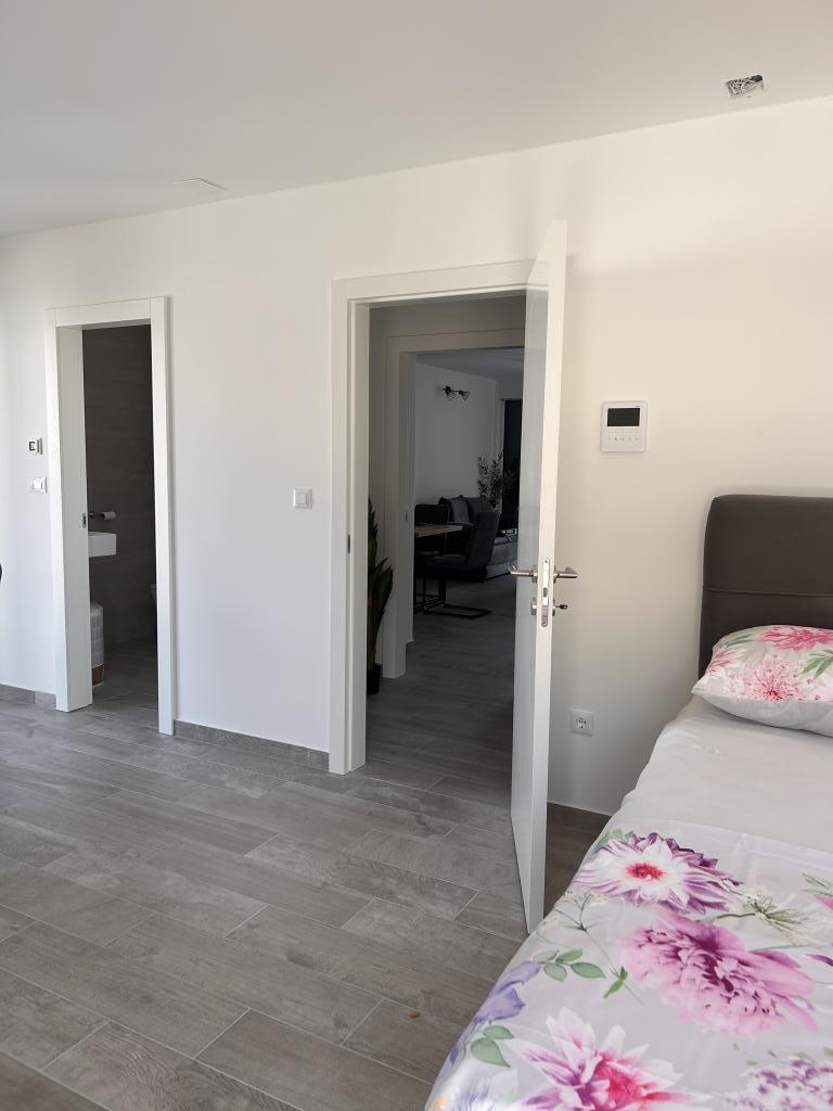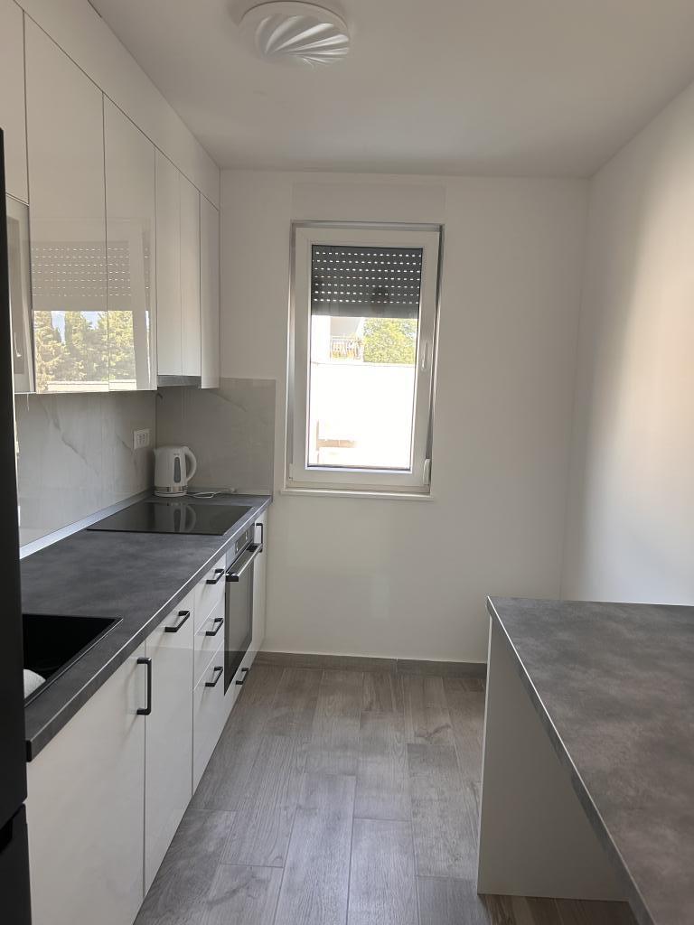 New apartment, located in a residential building, and therefore rented only to peaceful families who prefer a quiet environment. On the ground floor of the residential building you have a shop and a cafe bar and the center and the beach are about 200 m away. The apartment is designed for 6 people (4 + 2), it is used as a whole and can be divided into a studio (2 people) and an apartment for 2 + 2, because the apartment has two kitchens, two bathrooms. Ideal for two couples or people who like to have their own privacy. In the period from 1.11-15.05 Price on request.