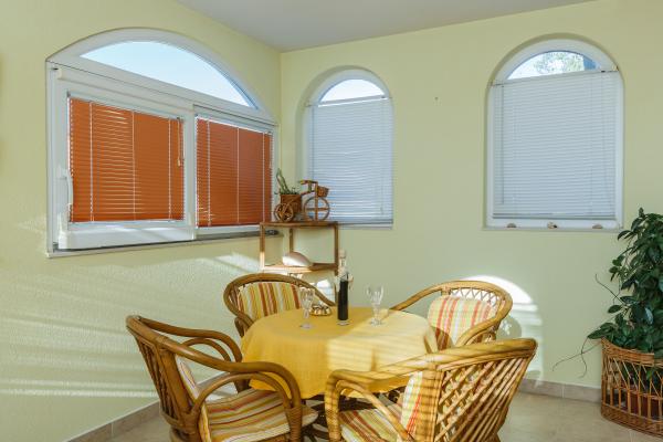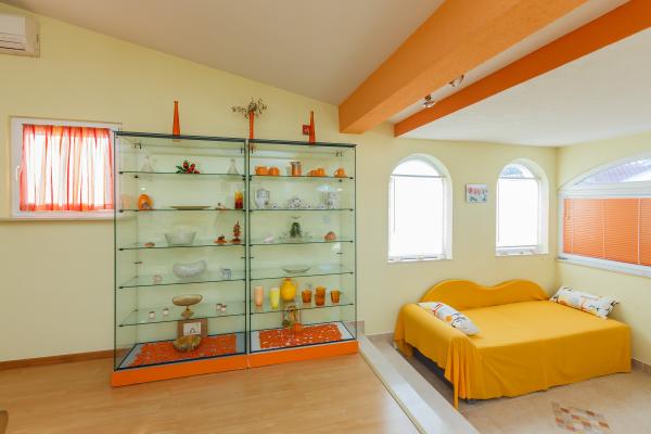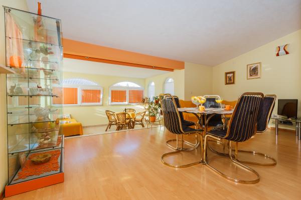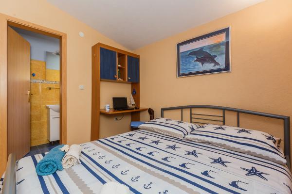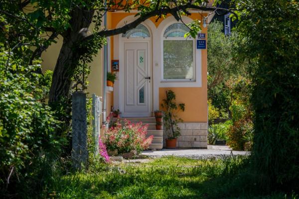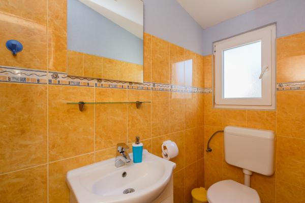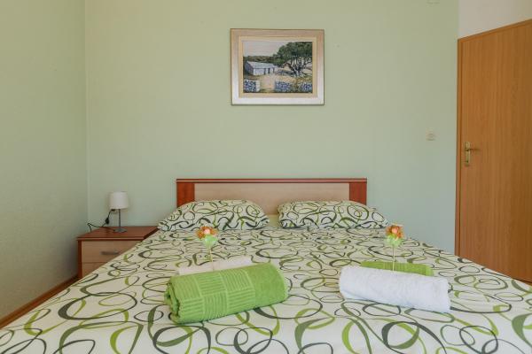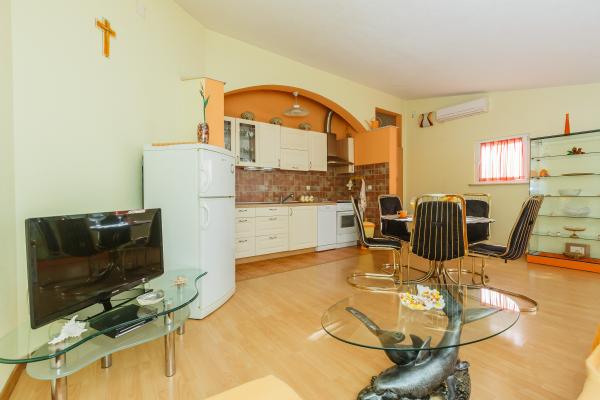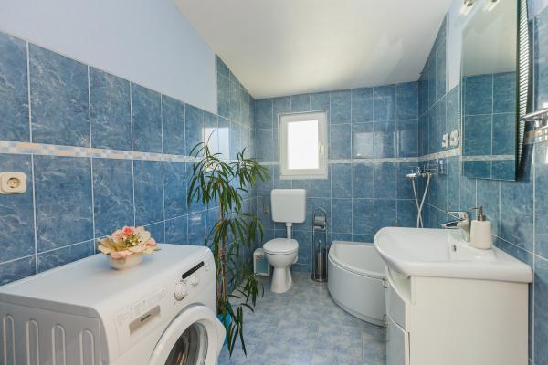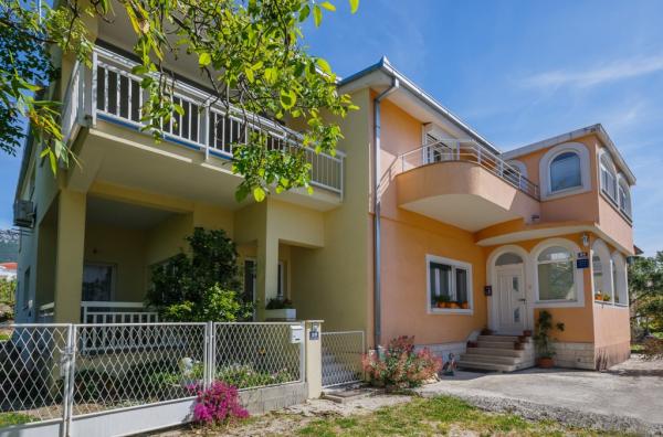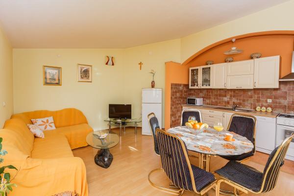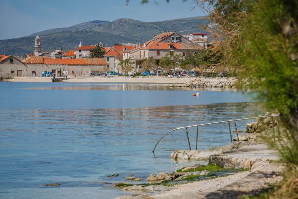 Apartment Lucia has two rooms with en suite facilities. One room has access to an open terrace. Living room and kitchen are spacious and connected with an enclosed terrace, this room is also air-conditioned. If necessary, in the living room can sleep 2-4 people. In addition, we have the possibility of one extra bed and crib for the baby. Guests have use of outdoor courtyard and barbecue. The building has a parking space. The advantage of the apartment's proximity to: the sea (80 m), shops, airports, bus stations, clinics, playgrounds, restaurants and cafes. The apartment is located in a quiet area with no noise and roads. For lovers of hiking, there is the proximity of Kozjak, and for lovers of plants Biblical Garden Stomorija. She's beautiful and cycling along the coast Bay, all of Castle Stafilic, to Kastel Gomilice where there is a marina for yachts. The City of castle is located in a favorable position near the towns of Split and Trogir and nearby islands.