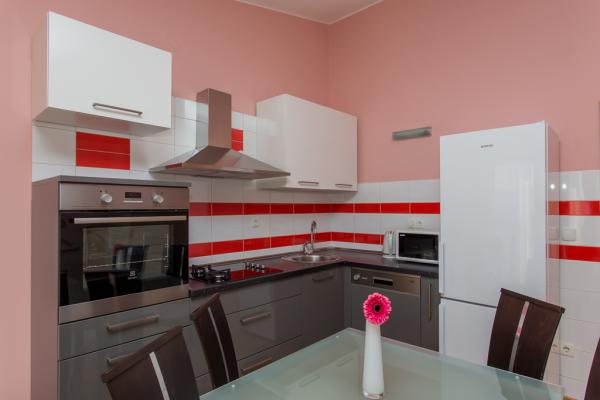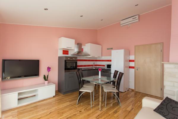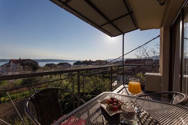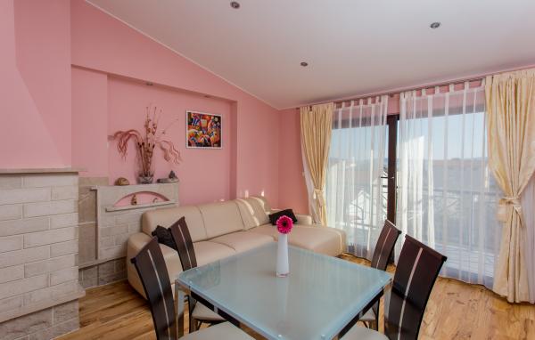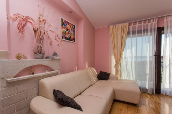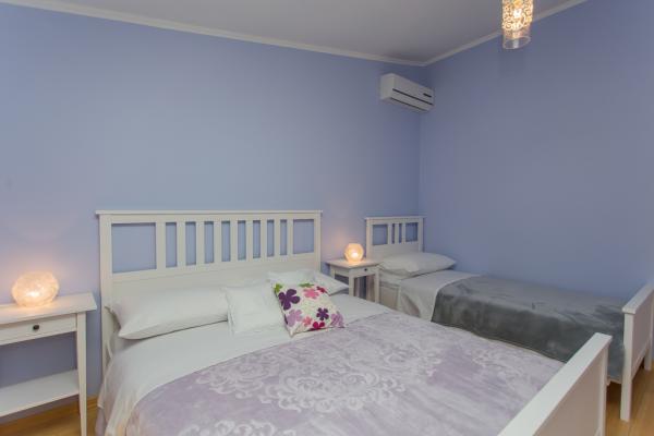 Fully furnished apartment for 5 persons in a quiet part of Kastel Kambelovac located just 3 minutes walk from the beach and restaurants. The apartment is located on the second floor and offers views of the sea. The size is 65m2, has two bedrooms, living room, kitchen, dining room and two terraces and one bathroom. The first bedroom has a large double bed and one single bed. The second bedroom has a double bed for two people. The kitchen is fully equipped with all necessary utensils and appliances (microwave oven, electric kettle, hand blender, coffee maker.).