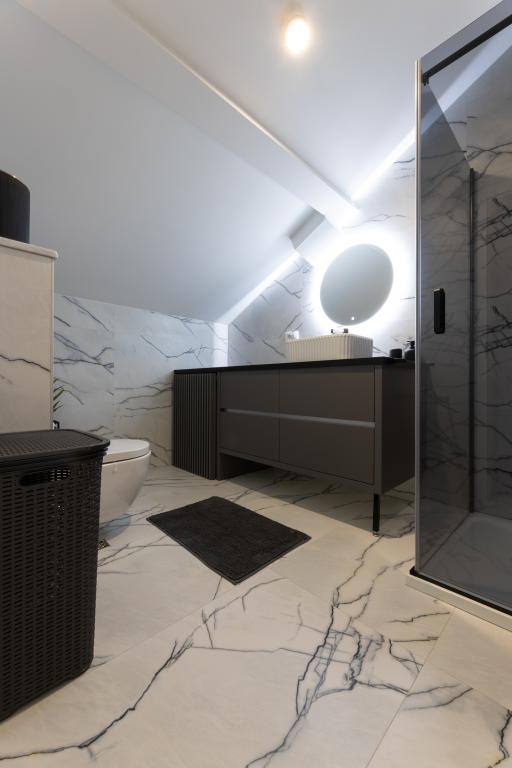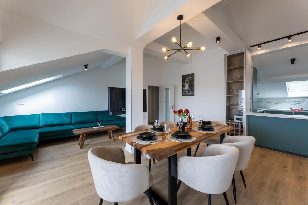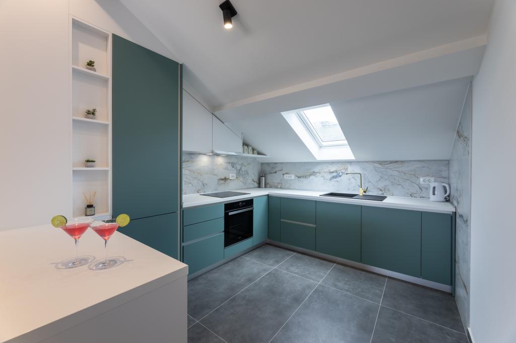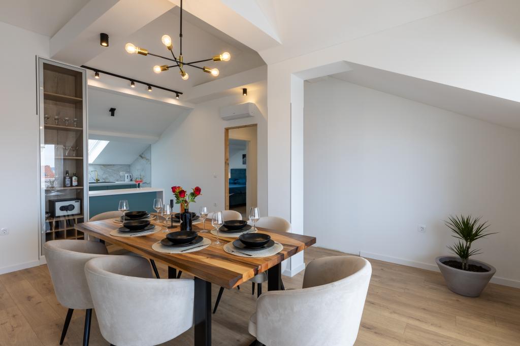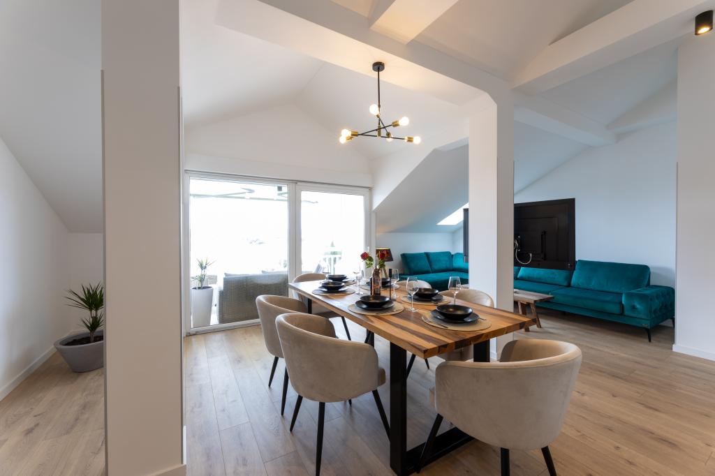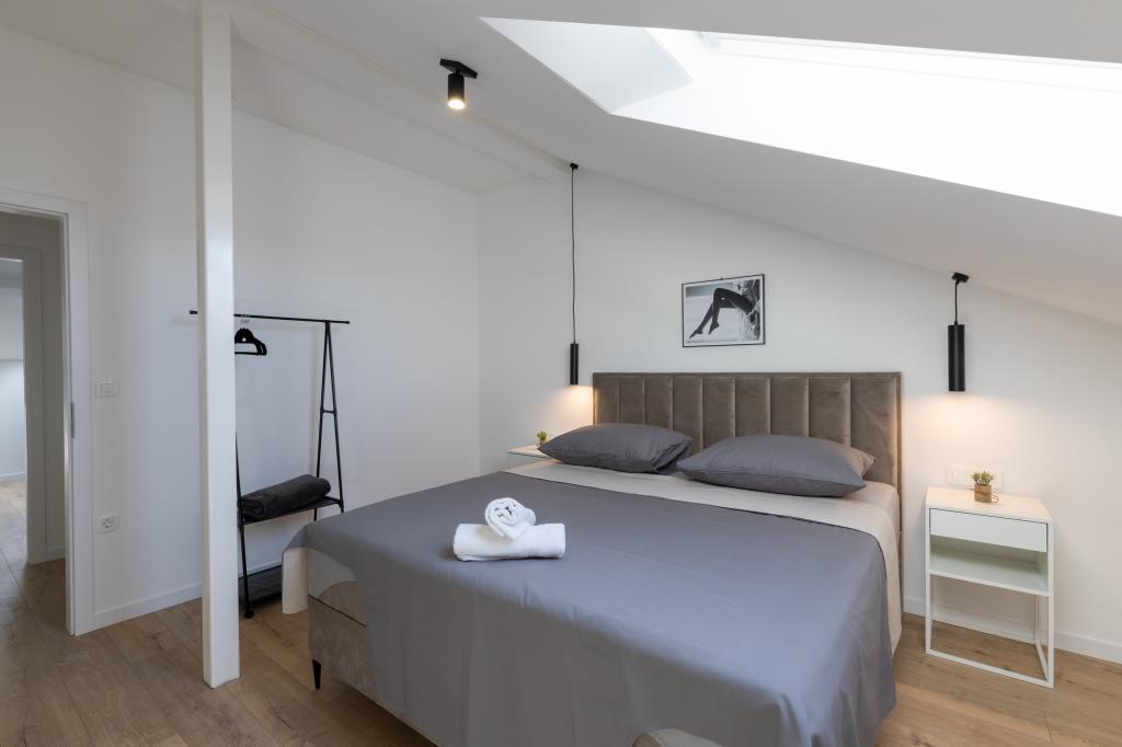 The house where the Panorama apartment 120 m2 is located (the top floor of the house) is located in the quiet surroundings of Kaštel Lukšić, a place between Trogir and Split. The apartment is newly renovated and equipped with all the necessities. It consists of 3 bedrooms (3 double beds), a living room, 2 bathrooms, a kitchen equipped with all kitchen appliances, dishes and cutlery and a balcony that offers a beautiful view of the sea. Each room has its own TV. For the guests of the apartment, bed linen, towels and a garage space are provided. The apartment also has WI-fi.
