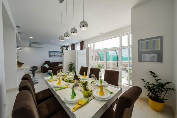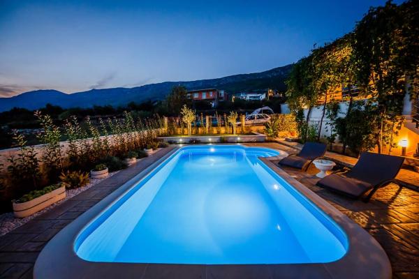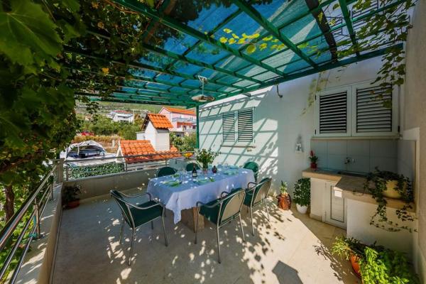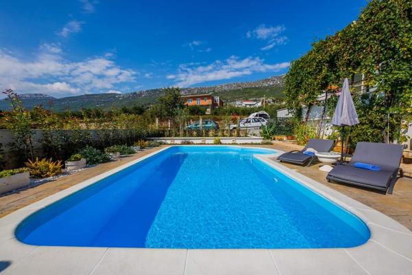 Luxuriously furnished apartment with heated pool, terrace, outdoor fireplace and covered parking. . Located in a quiet part of Kastela, with direct access from the road. 1, 2 km from the town center and 1, 3 km from the sea. The hosts live in an apartment above the apartment, always available, but discreet and inconspicuous. New apartment, rented for the first time since May 2019.